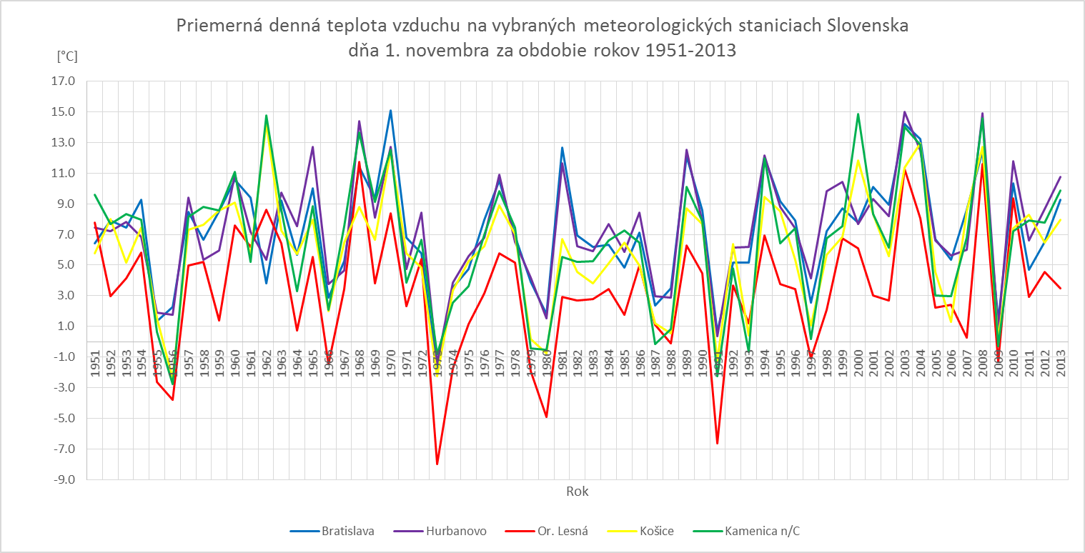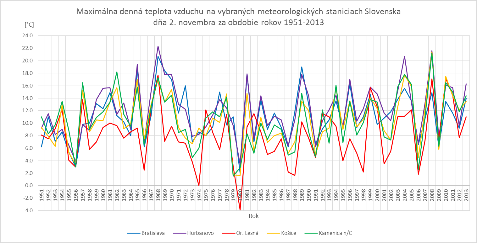Blížia sa sviatky Všetkých svätých a Pamiatka zosnulých a preto by sme Vám chceli priniesť krátky prehľad počasia v tomto čase, kedy väčšina ľudí trávi čas návštevou cintorína. Preto sme sa rozhodli pripraviť krátky prehľad počasia na vybraných meteorologických staniciach Slovenska v období 1951-2013.