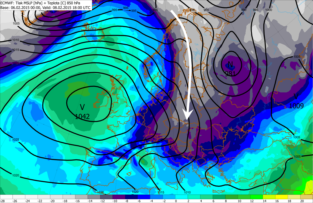V nedeľu (8.2.2015) bude cez Slovensko od severu prechádzať studený front, ktorý prinesie výraznú zmenu počasia.