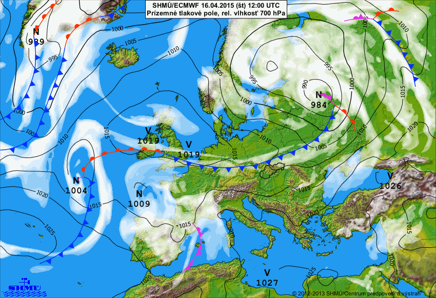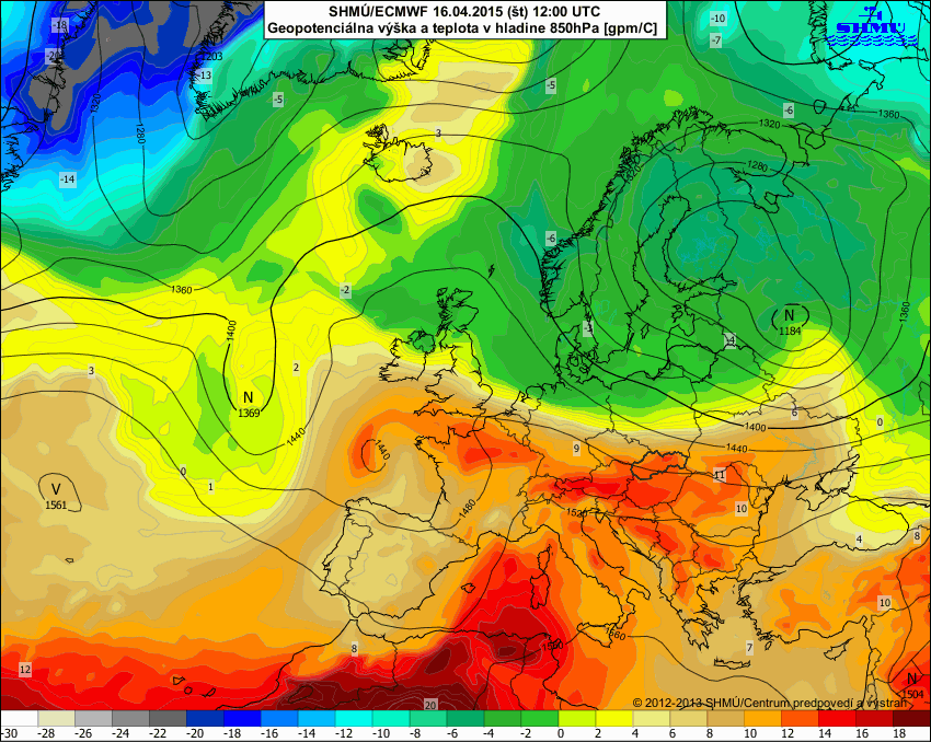 Spôsobené to bolo najmä prílivom veľmi teplého vzduchu od juhu až juhozápadu pred blížiacim sa studeným frontom od severozápadu spojený s tlakovou nížou nad Baltickým morom (Obr. 2). Teplotné zvrstvenie nad Európou dokumentujeme aj sériou obrázkov od hladiny 500hPa (približne vo výške 5km, Obr. 3), 850hPa (1,5km, Obr. 4) a v 2m nad zemským povrchom (Obr. 5) poskytnuté Odborom Numerické predpovedné modely a metódy.
