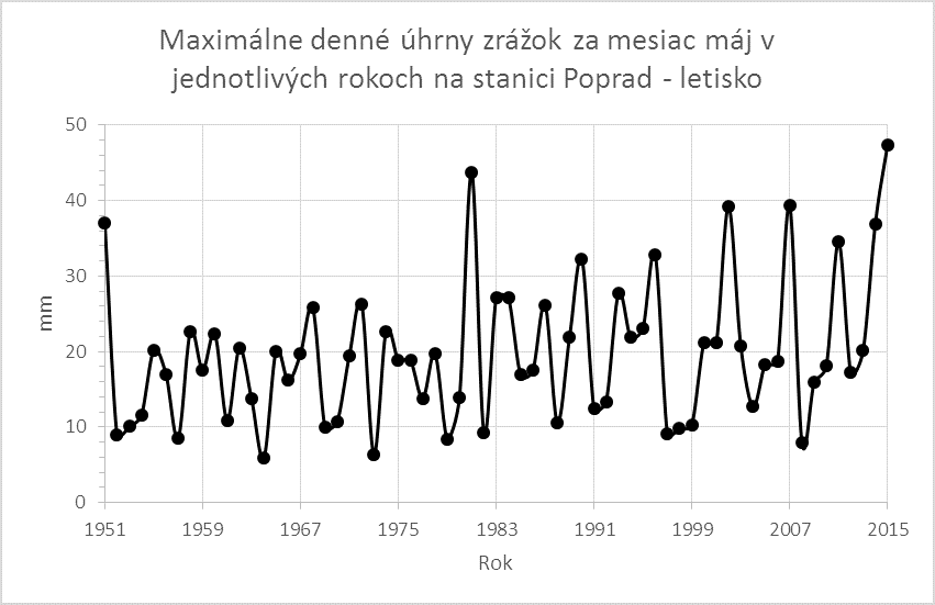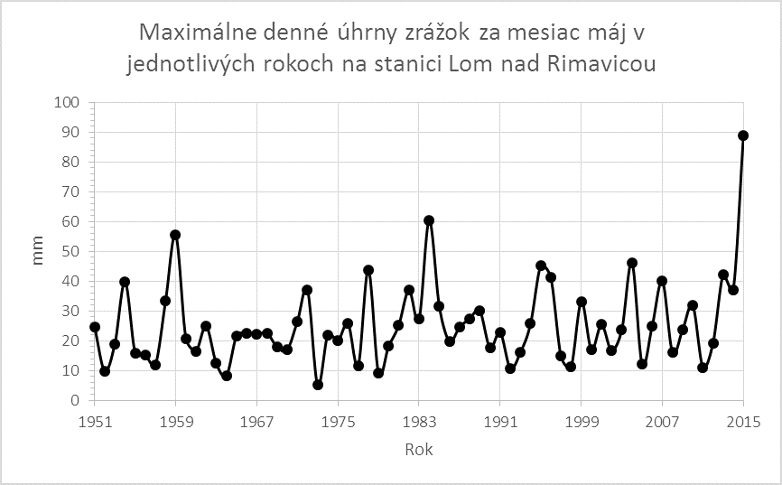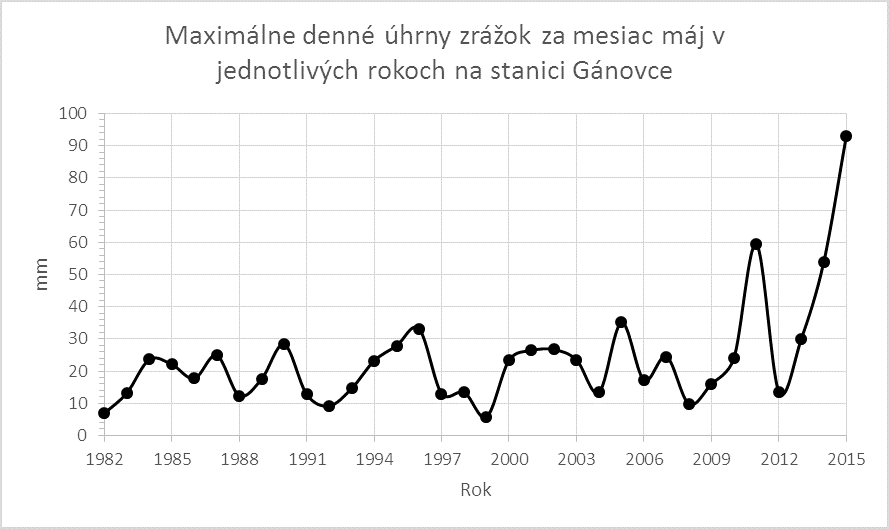 Takéto vysoké denné úhrny zrážok, aké boli zaznamenané v oblasti Gánoviec a Lomu nad Rimavicou sú typické skôr pre obdobie vrcholového leta, a preto ich výskyt v máji je veľmi pozoruhodný. Principiálne podobná skúsenosť existuje zo septembra 2014, kedy na Záhorí, v Malých Karpatoch, ale aj v oblasti Myjavy dosiahli denné úhrny zrážok 11. septembra 2014 na niektorých miestach až okolo 100 mm (Pernek 104 mm). Boli to samozrejme pre tento prvý jesenný mesiac rekordné vysoké denné úhrny zrážok.
