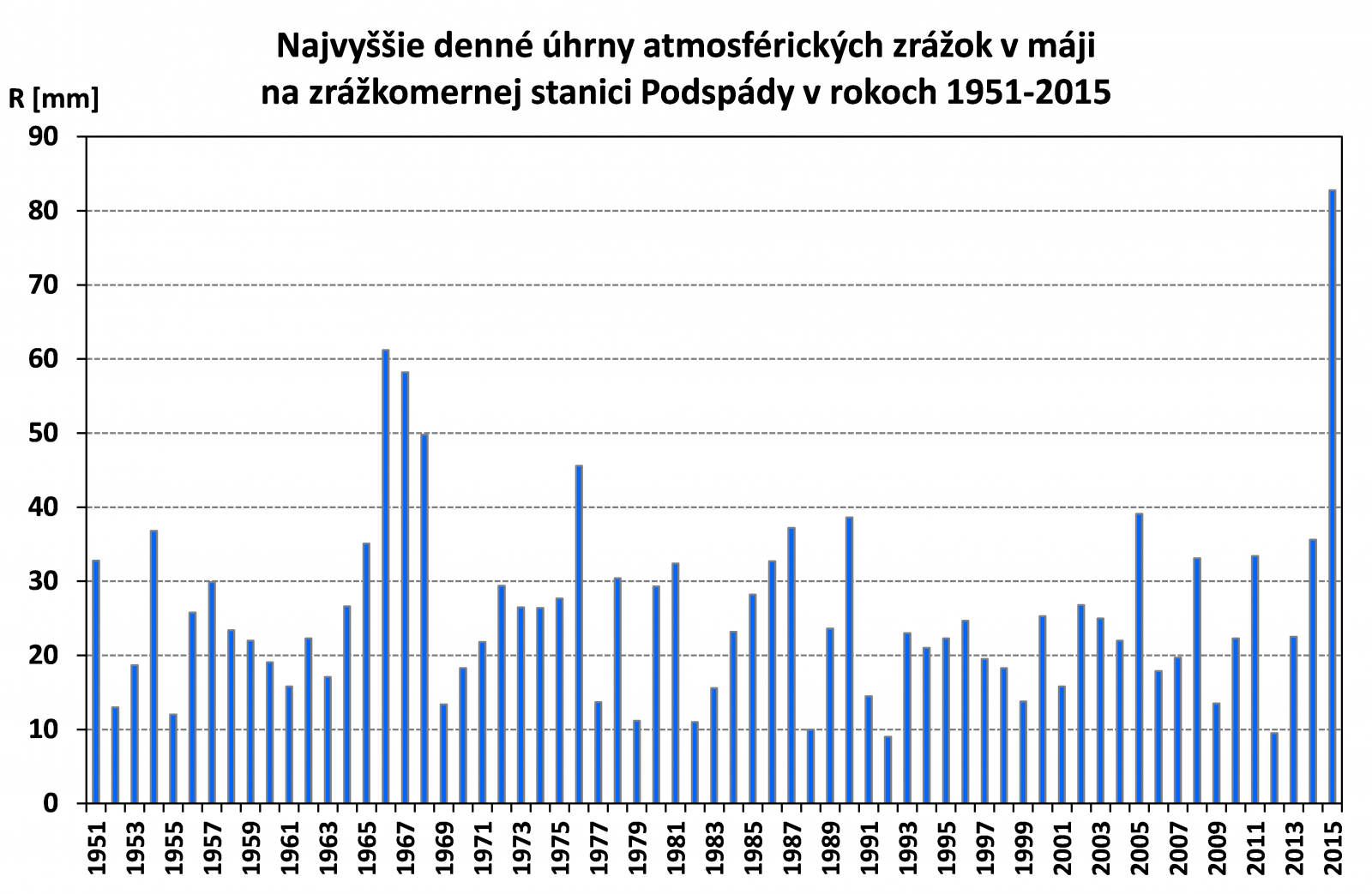 Mimoriadne denné úhrny atmosférických zrážok pre mesiac máj na severnej strane Tatier