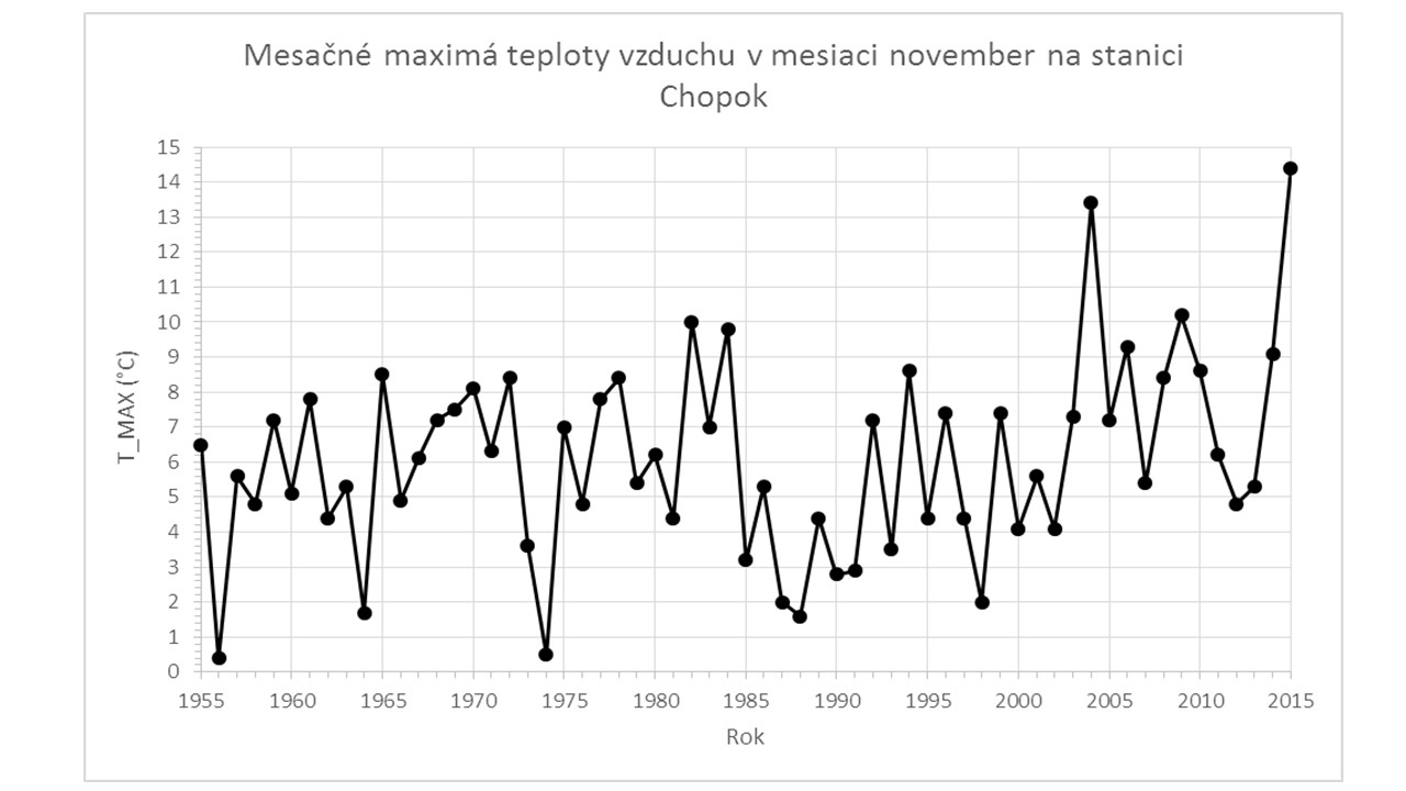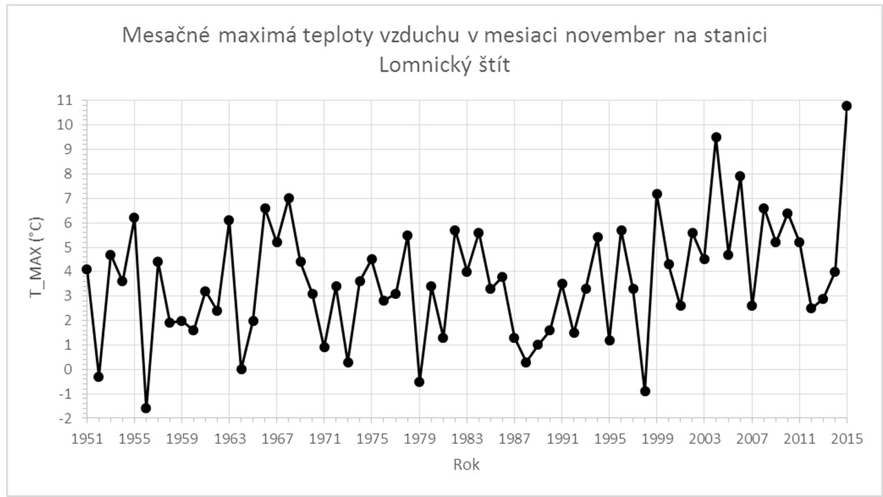 Novembrové rekordy maximálnej a priemernej dennej teploty vzduchu vo vysokých horských polohách.