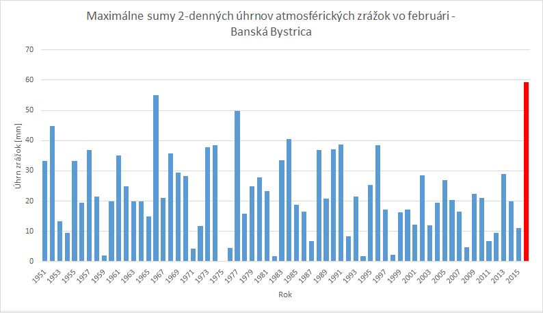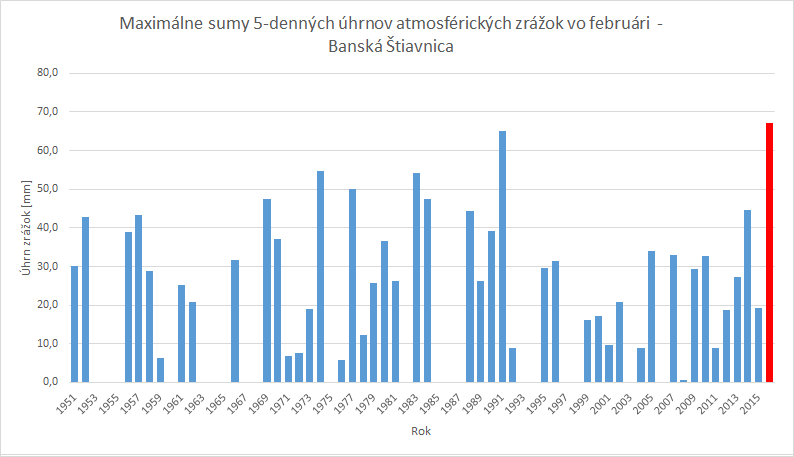 Maximálne viacdenné úhrny atmosférických zrážok na Slovensku vo februári 2016