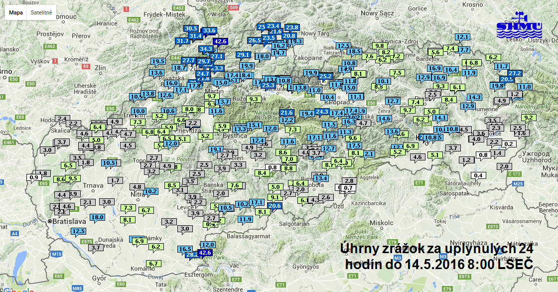 Na začiatku obdobia 12.5. - 15.5. 2016 k nám po prednej strane rozsiahlej tlakovej níže nad juhozápadnou Európou prúdil od juhozápadu až juhu teplý vzduch. V Košickom kraji sme na Pankráca 12.5. dokonca zaznamenali prvý májový letný deň (no nie prvý v tomto roku - v apríli už boli 4 takéto dni) na staniciach Moldava n. Bodvou, Orechová, Budkovce, Somotor či Leles. Stred níže sa postupne presunul do strednej Európy a v noci zo štvrtka na piatok 13.5. prechádzal cez Slovensko na severovýchod s ňou spojený oklúzny front, ktorý priniesol výraznejšie zrážky najmä v južnej polovici územia.