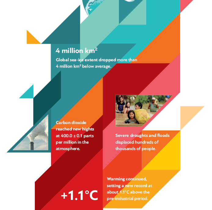 Výročná správa o stave globálnej klímy za rok 2016, zverejnená 21. marca 2017, obsahuje po prvýkrát aj hodnotenie ekonomických a sociálnych dôsledkov extrémnych prejavov počasia. Správa vychádza nielen z podkladov a údajov troch svetových klimatologických centier (NASA, NOAA a Met Office & CRU), ale aj z pravidelných správ členských národných hydrometeorologických služieb (vrátane SHMÚ).