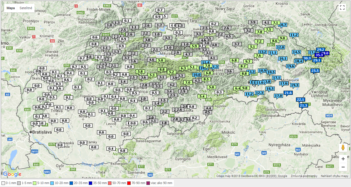 Obr. 2: 24-hod. úhrn zrážok 16.12.2017 6:00 SEČ.