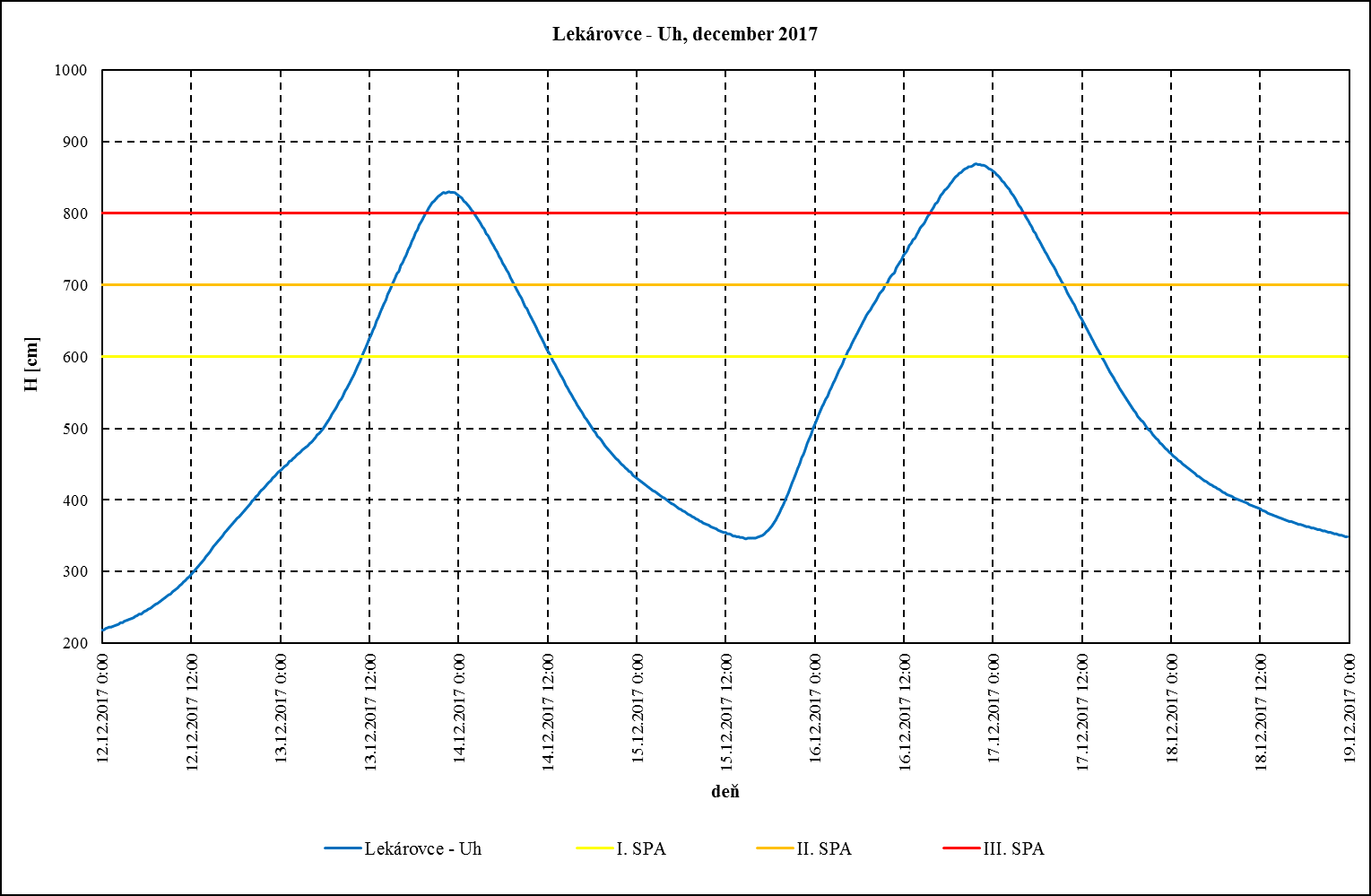 Obr. 5: Priebeh vodného stavu na Uhu v profile Lekárovce.