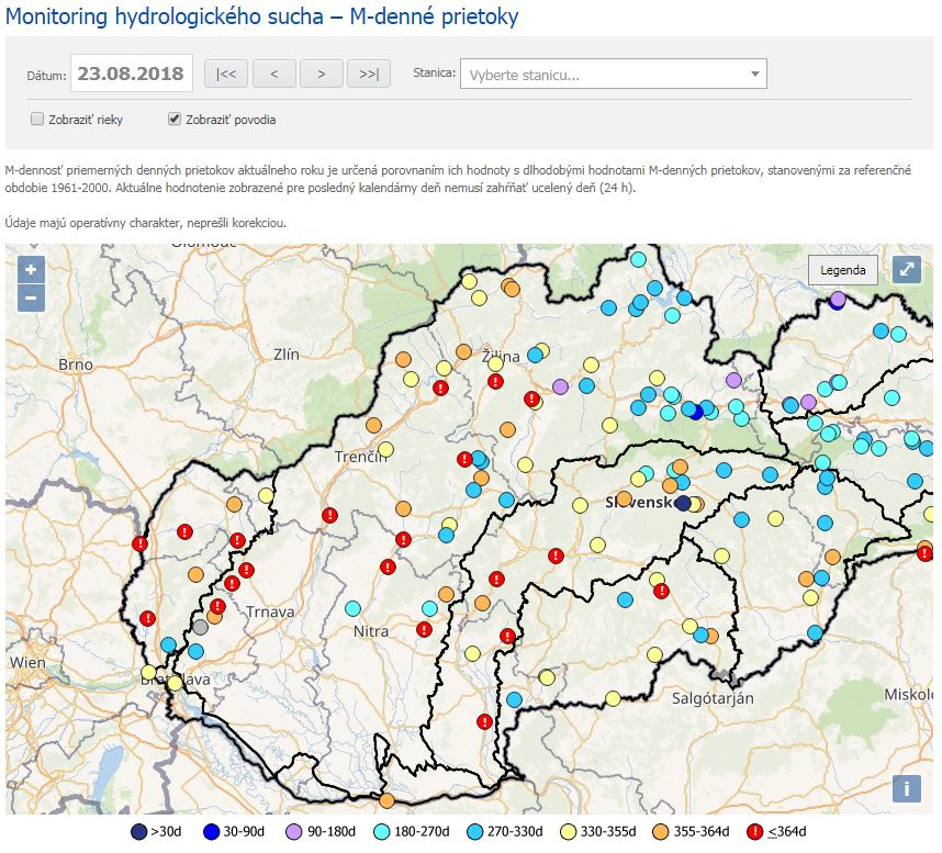 Na Morave nad Dyjou, vo vodomernej stanici Brodské, bol 22.8.2018 priamo nameraný prietok 2,15 m3.s-1, čo je najmenší prietok od roku 1931. Na Račianskom potoku vo Vajnoroch bol dňa 23.8 2018 nameraný prietok 0,001 m3.s-1, čo je najmenší prietok od roku 1968. Na ďalších tokoch z Malých Karpát sú namerané prietoky tesne nad historickými minimami.