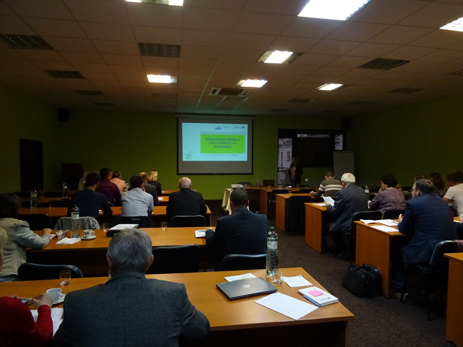 Dňa 23.10.2018 sa konal seminár „Hodnotenie sucha a jeho dopadov na Slovensku“ v rámci projektu DriDanube. Seminár organizoval Slovenský hydrometeorologický ústav v spolupráci so Slovenskou poľnohospodárskou a potravinárskou komorou (SPPK). Zúčastnili sa ho najmä odborníci a pracovníci z poľnohospodárskej, ovocinárskej a lesníckej komunity. Podujatie sa uskutočnilo v hoteli Satelit v Piešťanoch. Seminár otvorili generálny riaditeľ SHMÚ, M. Benko, a riaditeľ Odboru poľnohospodárstva a služieb SPPK, Ján Baršváry. V úvodnej prednáške prezentovala L. Labudová dostupné produkty monitoringu sucha, ktoré prevádzkuje SHMÚ, vrátane užívateľského rozhrania projektu (www.droughtwatch.eu). V ďalšom príspevku G. Ivaňáková predstavila systém zberu a vyhodnocovania údajov z monitoringu dopadov sucha s dôrazom na motiváciu na zapojenie sa nových expertov do národnej reportovacej siete. V popoludňajšej sekcii odznela prednáška P. Valovej na tému predpovedí počasia so zreteľom na správne čítanie a interpretáciu predpovedných produktov na stránke SHMÚ. Odborný program zakončil P. Hlavinka z CzechGlobe so skúsenosťami monitoringu sucha a jeho dopadov v ČR. Prezentácie boli sprevádzané bohatou diskusiou, do ktorej sa účastníci seminára veľmi aktívne zapájali.