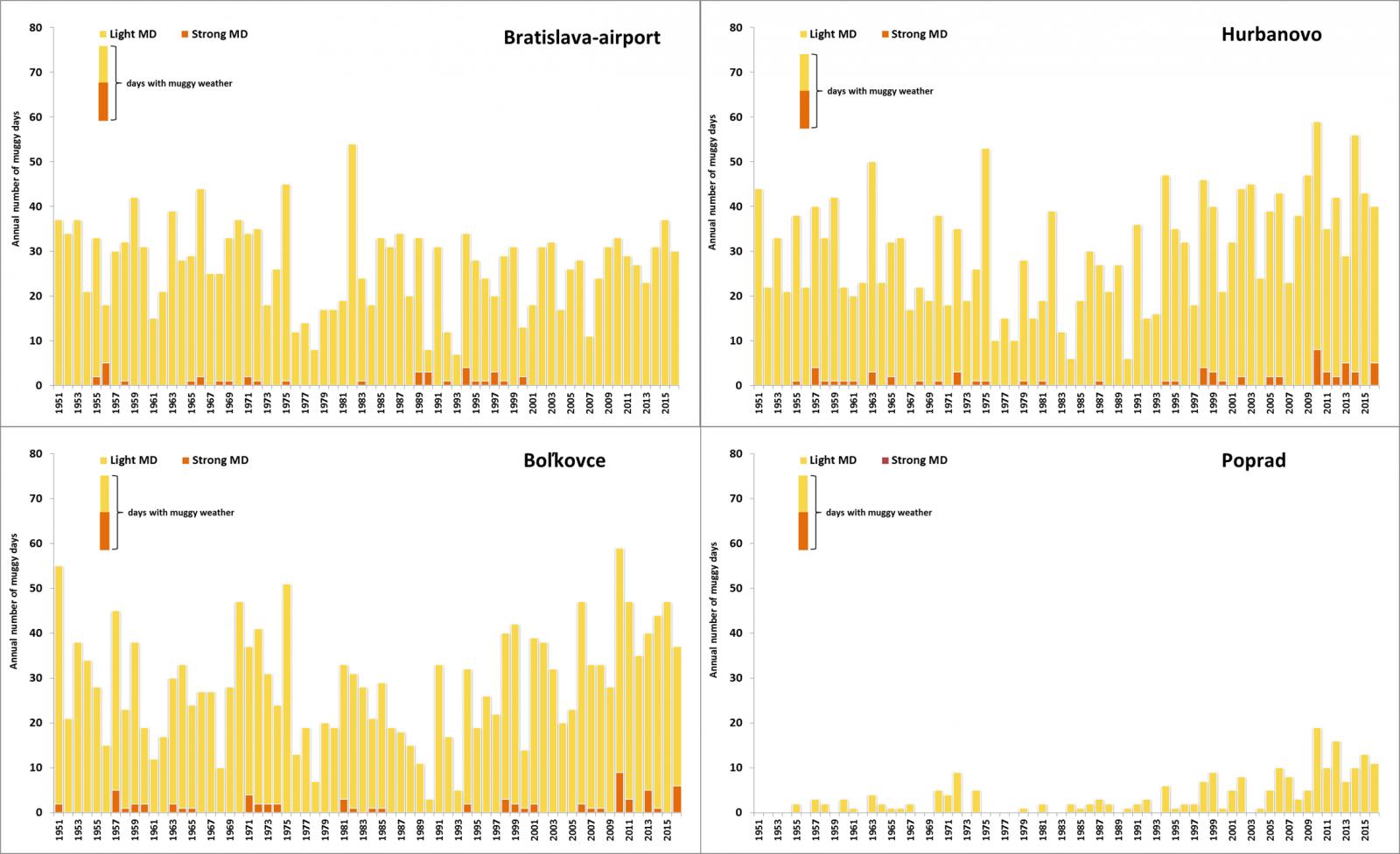 MIKULOVÁ, K., PECHO, J., MADARA, M., ŠŤASTNÝ, P. (2017): Climatology of water vapor pressure conditions and muggy days incidence in Slovakia. In: EMS Annual Meeting Abstracts, Vol. 14, EMS2017-374, 2017