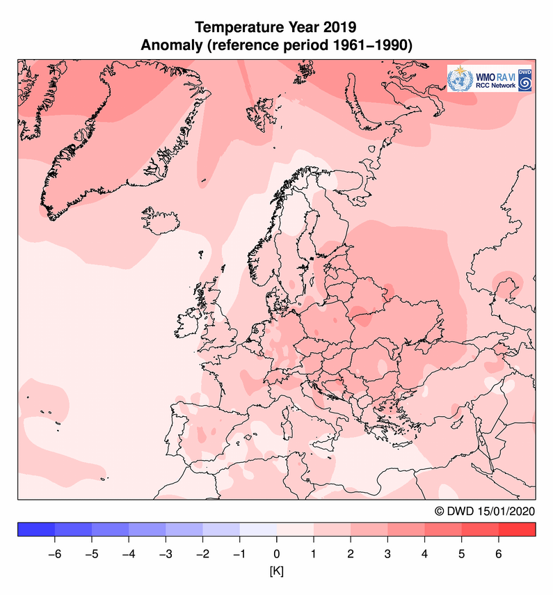 Podľa predbežných údajov globálnych databáz teploty povrchu kontinentov a oceánov (NASA, NOAA, CRU, JMA, Berkeley a ERA5), ako aj oficiálnej tlačovej správy Svetovej meteorologickej organizácie (WMO), rok 2019 bol druhým najteplejším rokom aspoň od roku 1880 (za rokom 2016), pričom bol to súčasne vôbec najteplejší rok bez významnejšieho vplyvu ENSO (El Niño). V správe WMO sa súčasne uvádza, že obdobie rokov 2015 – 2019, resp. posledná dekáda 2010 – 2019, boli historicky najteplejšie periódy za posledných aspoň 140 rokov. Počnúc obdobím 80. rokov 20. storočia, každé ďalšie desaťročie bolo významne teplejšie ako predošlé obdobie (dekáda). Predpokladá sa, že tento trend bude pokračovať z dôvodu rekordne vysokých koncentrácií skleníkových plynov aj v nasledujúcich dekádach 21. storočia. Podľa údajov ECMWF (ERA5) a Klimatického programu Copernicus (C3S), rok 2019 bol v Európe najteplejší rok aspoň od roku 1980 (predbehol tak aj roky 2014, 2015 a 2018). Okrem polárnych periférií Európy, významnejšie teplejšie ako klimatický normál 1961 – 1990 (resp. 1981 – 2010) boli predovšetkým rozsiahle oblasti strednej a východnej Európy s odchýlkami +2,0 až +3,0 °C. Relatívne najteplejšou sezónou v roku 2019 bolo v Európe leto (jún – august 2019), s odchýlkami v intervale od +3,0 do +5,0 °C v porovnaní s obdobím 1961 – 1990 (najmä v oblasti strednej a západnej Európy).