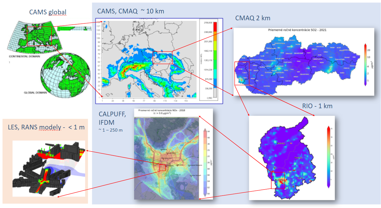 RIO – pokrýva územie SR s horizontálnym rozlíšením 2 km, využíva sa na celoročné hodnotenie kvality ovzdušia (v kombinácii s metódou IDWR), ale aj na výpočet máp kvality ovzdušia v takmer reálnom čase)