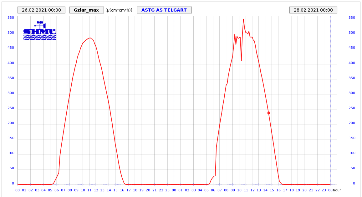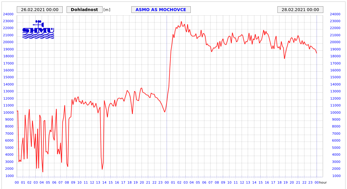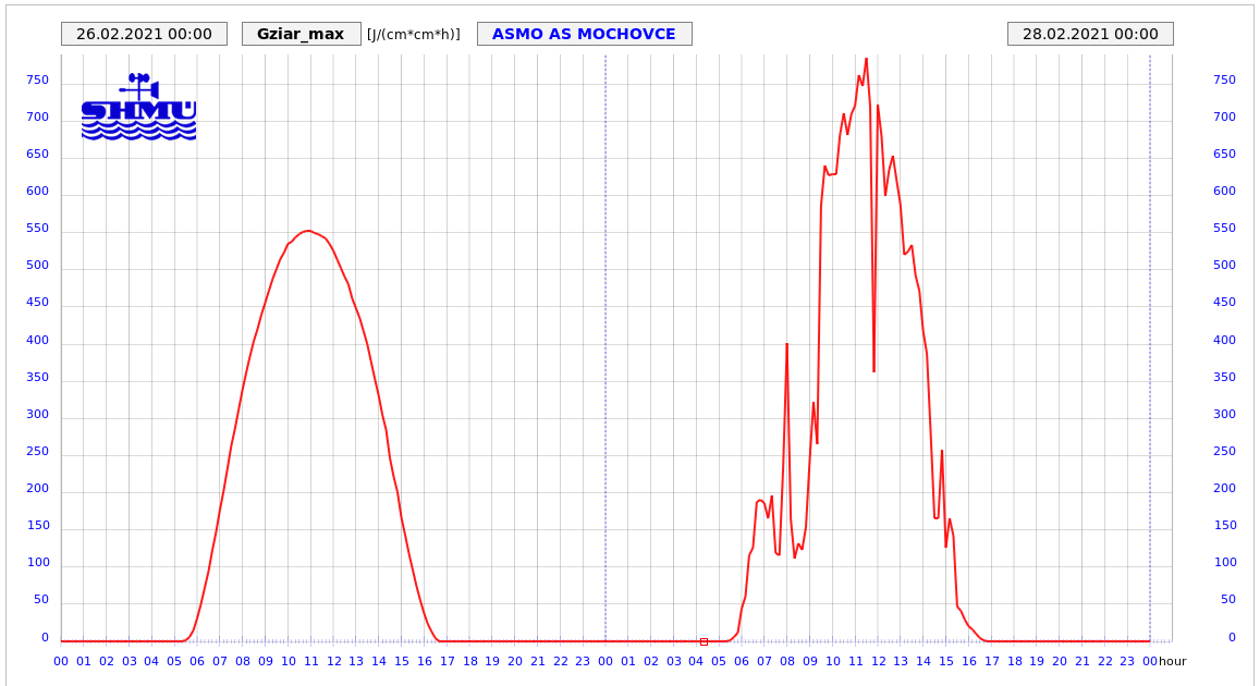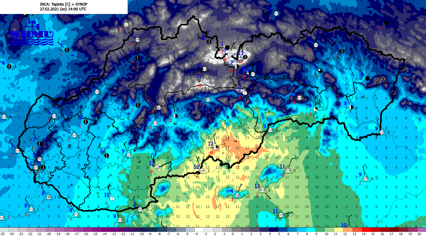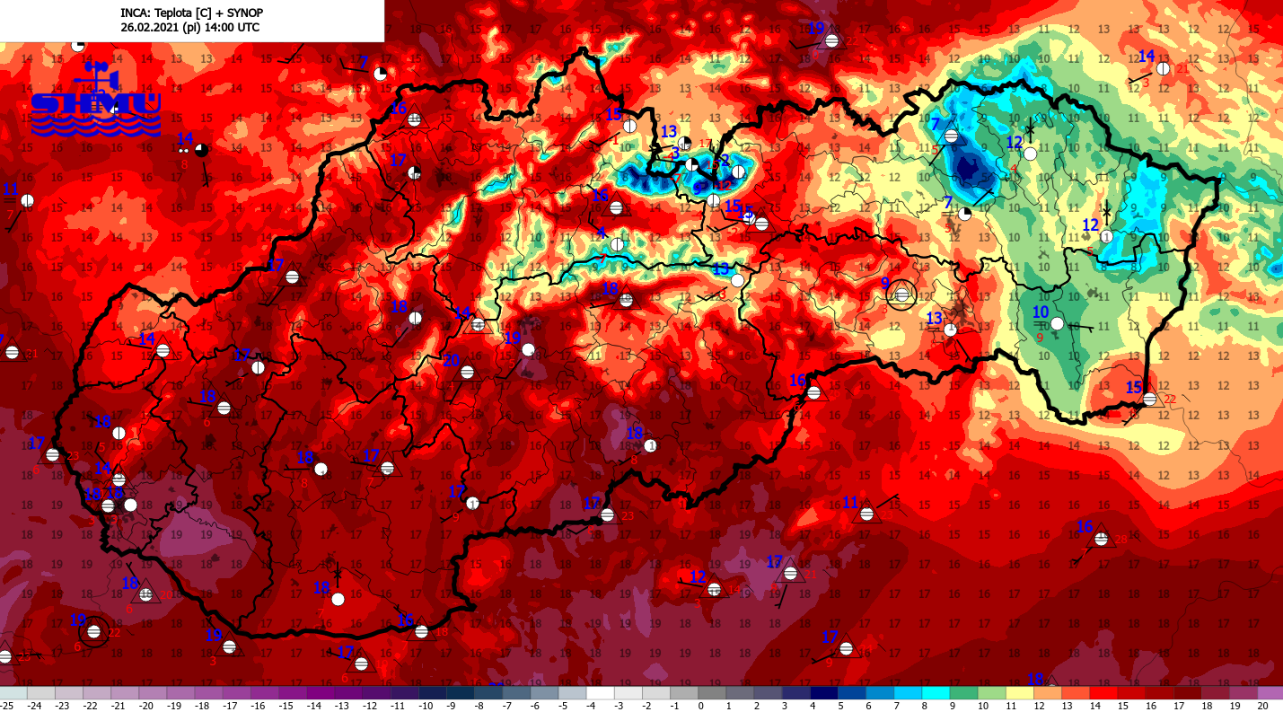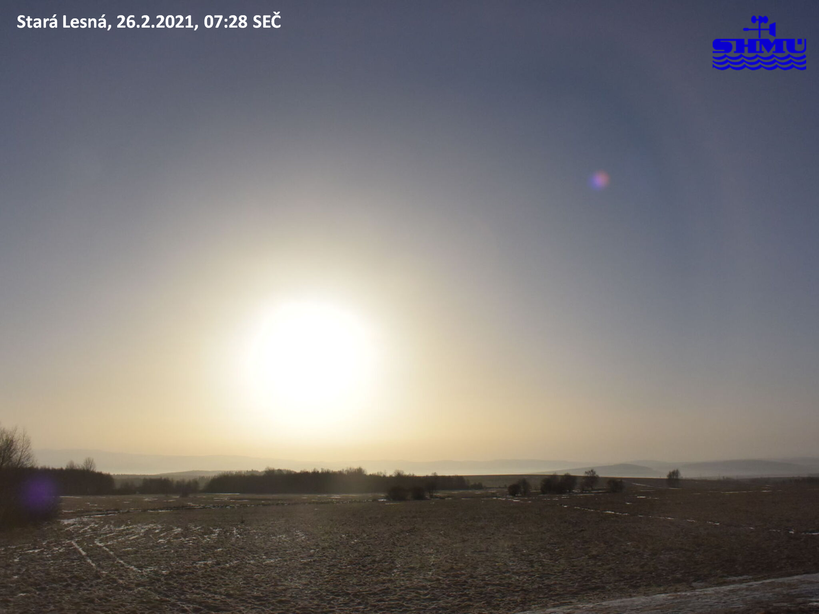 Počas pracovného týždňa (22.2. - 26.2.2021) do našej oblasti prúdil od juhozápadu veľmi teplý, pôvodom tropický vzduch. V ňom bolo v úvode týždňa extrémne teplo najmä na horách, kedy bol prekonaný aj februárový rekord najvyššej teploty vzduchu na Lomnickom štíte a bola nameraná vôbec najvyššia hodnota teploty nameraná v zime na Skalnatom plese (podrobnosti TU a TU). V priebehu týždňa inverzia slabla, a veľmi teplý vzduch sa tak výrazne prejavil aj v nižších polohách, keď sme tri dni po sebe na našom území namerali 20 °C (viac TU, TU a TU). Vo vzduchu sa súčasne nachádzalo aj veľké množstvo nečistôt, vrátane saharského prachu. Tento prach sa však bez zrážok dostával na zemský povrch len obmedzene. Lepšie sme ho mohli identifikovať na základe meraní, zvýšenej prašnosti, zníženej dohľadnosti a inom sfarbení oblohy, v ktorej bolo menej modrej zložky svetla ako obvykle (fyzikálne vysvetlenie TU).
