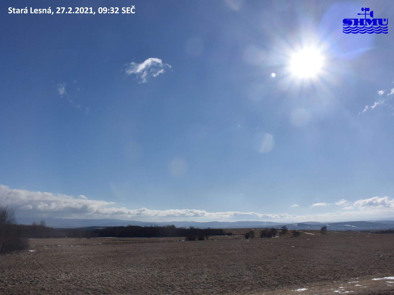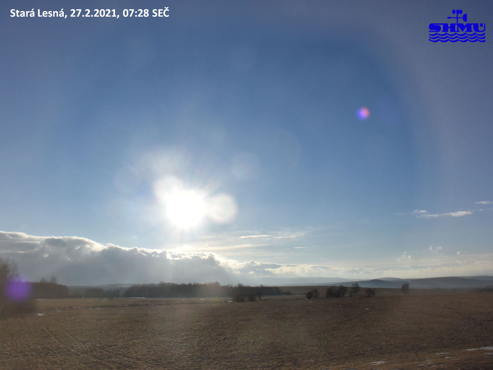 V nasledujúcich obrázkoch prinášame porovnanie situácie pred a po prechode studeného frontu. Studený front prešiel cez naše územie v noci na sobotu 27.2. a za ním k nám od severozápadu prenikla chladnejšia morská vzduchová hmota, ktorá je typicky veľmi čistá, čo je vo výraznom kontraste so vzduchom z pracovného týždňa. To jednoznačne vidieť aj porovnaním sfarbenia oblohy, identifikácie slnka, ostrosti fotografií a dohľadnosti na priložených obrázkoch nižšie (porovnanie nebolo možné na celom území, pretože najmä na severe, krajnom západe a miestami aj východe bolo po prechode frontu aj počas dňa zamračené). Pre čo najlepšie porovnanie fotografie nie sú nijako upravované a zábery z jednotlivých staníc sú vybrané v rovnakú dennú dobu. Zvýšenie dohľadnosti, nárast maxima intenzity žiarenia a zníženie koncentrácie PM10 častíc po prechode studeného frontu dokumentujú aj merania týchto veličín v závere článku.