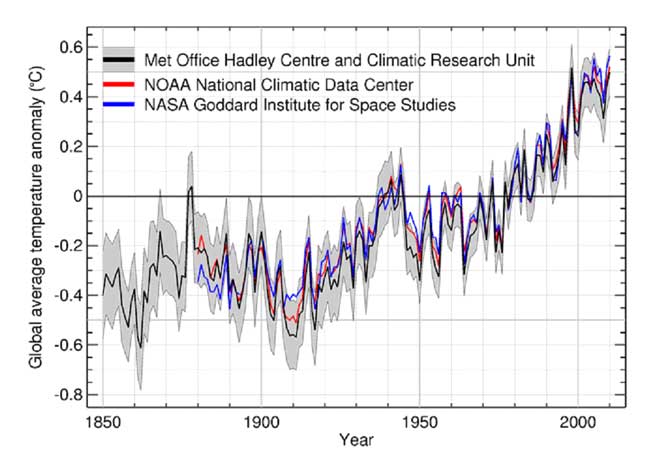 Uvedené štatistiky sú založené na súboroch dát vedených v Klimatologickej výskumnej jednotke Hadleyho centra Meteorologickej služby Spojeného kráľovstva, amerického Národného klimatického dátového centra (NCDC) a amerického Národného úradu pre letectvo a kozmonautiku (NASA).