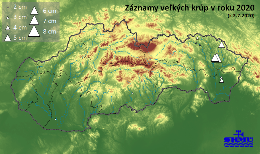 Všetky hodnotené štatistické ukazovatele tak poukazujú na najčastejší/najpravdepodobnejší výskyt veľkých krúp na východe Slovenska, čo potvrdzujú aj aktuálne záznamy z roku 2020.