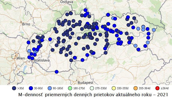 * Poznámka: M-denný prietok predstavuje priemerný denný prietok dosiahnutý alebo prekročený po M dní v zvolenom období. To znamená, že napríklad 355-denný prietok (Q355d) je hodnota, ktorá by v danom profile na toku mala byť menšia v priemere len 10 dní v roku (365 dní mínus 355), po zvyšné dni roka by mala byť buď rovná tejto hodnote alebo väčšia. Za hodnoty blízke minimám (obdobie sucha) považujeme najmä hodnoty odpovedajúce Q355d, Q364d.