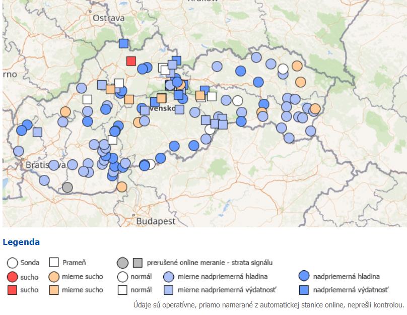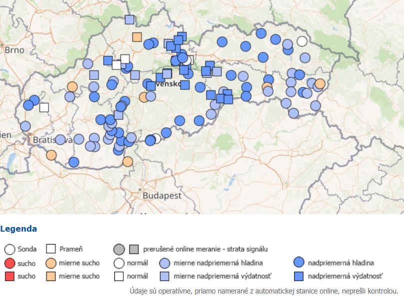 Hodnotenie aktuálneho hydrologického stavu sa vykonáva na základe operatívnych prietokových údajov z vybraných vodomerných staníc povrchových vôd, na základe operatívnych hodnôt hladiny podzemnej vody a výdatnosti prameňov vybraných monitorovacích objektov.