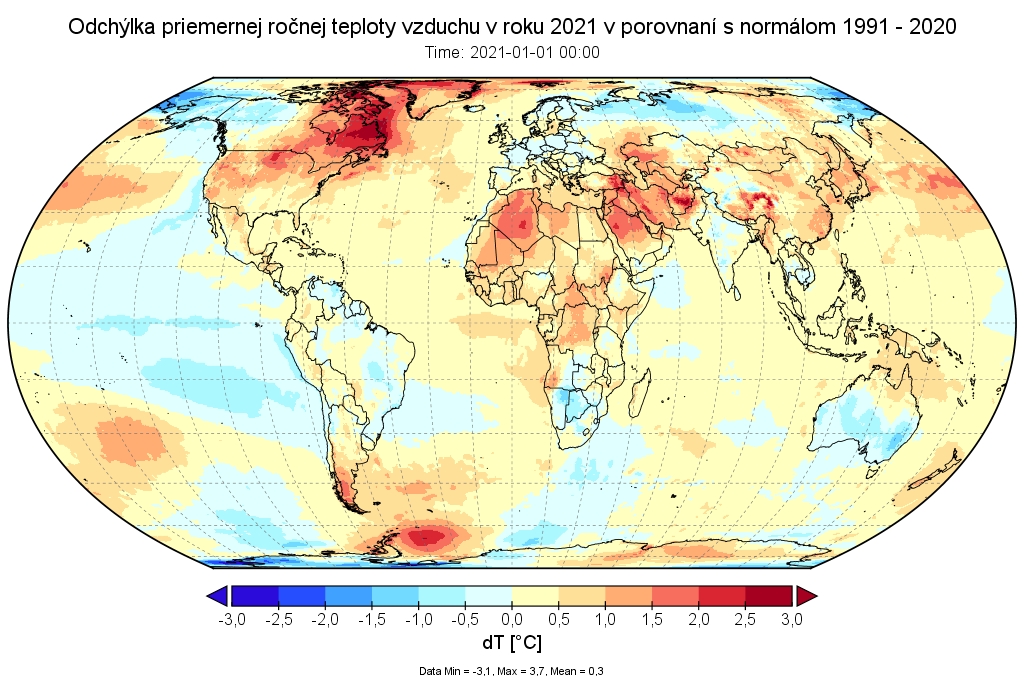 Rok 2021 bol jedným zo siedmich najteplejších rokov v histórii meraní