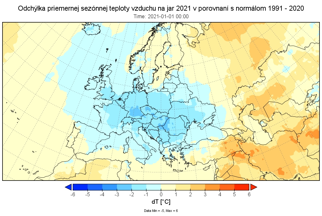 Mimoriadne chladné podmienky postihli v polovici februára 2021 mnohé časti centrálnej časti Spojených štátov a severného Mexika. Najvážnejšie dôsledky boli pozorované v Texase, kde zaznamenali najnižšie teploty vzduchu od roku 1989. Zvlášť pozoruhodná a pomerne studená bola aj jar v rozsiahlej časti strednej a západnej Európy, pričom relatívne najchladnejšie boli mesiace apríl a máj 2021 (pozri Obr. 4).