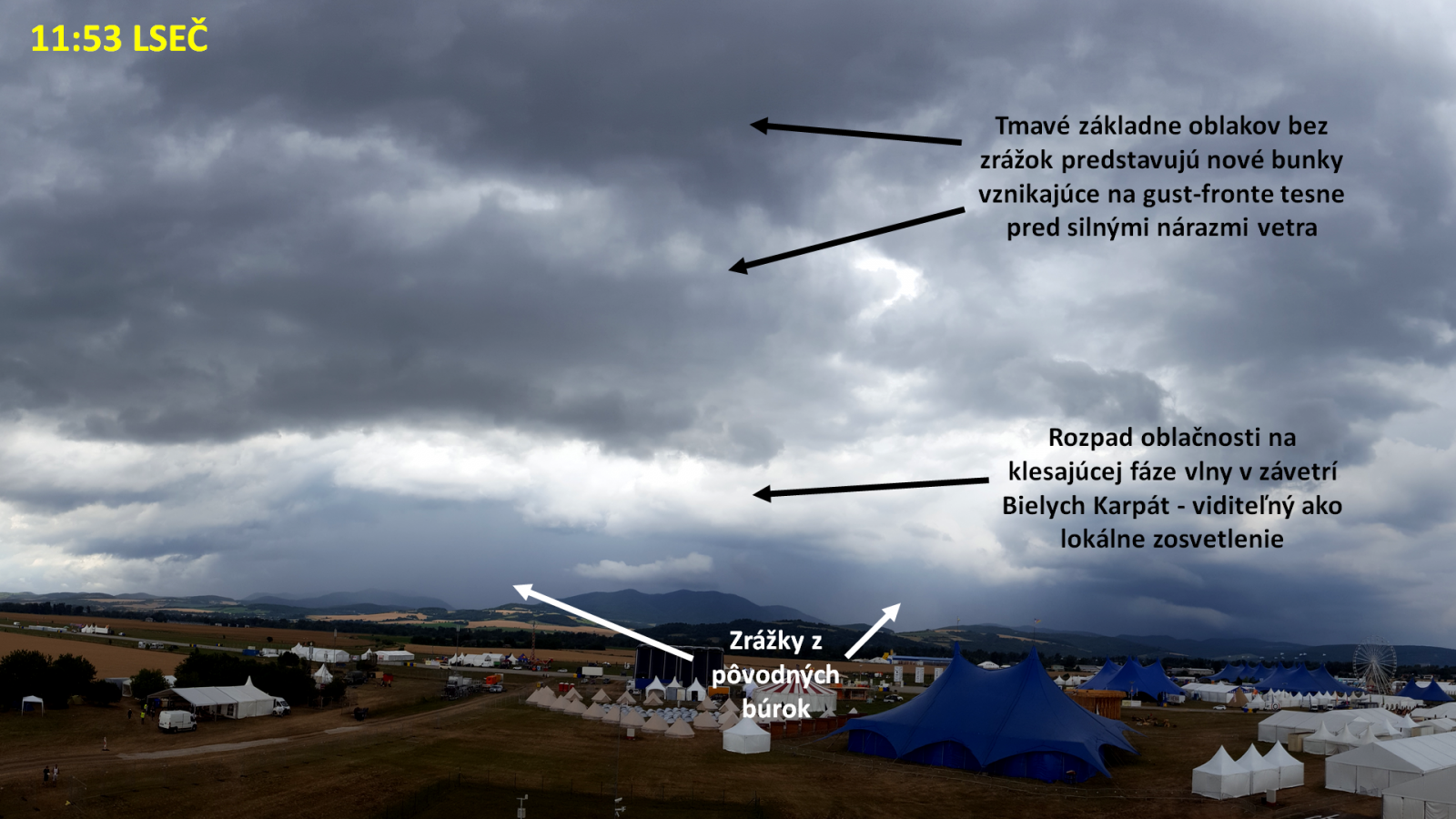 SHMÚ na Pohode: Orografické efekty na letisku Trenčín pri prechode búrok cez Biele Karpaty 6.7.2022