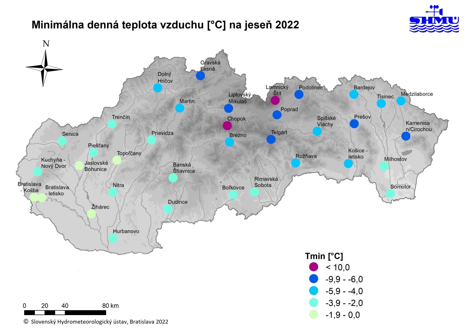 To, že november bol teplotne nadnormálny v Bratislavskom, Banskobystrickom a Košickom kraji môžu najmä vyššie minimálne teploty vzduchu, ktoré v priemere dosahovali odchýlku od hodnôt z 1991 – 2020 +1,5 °C a lokálne až +2,6 °C (Rimavská Sobota).