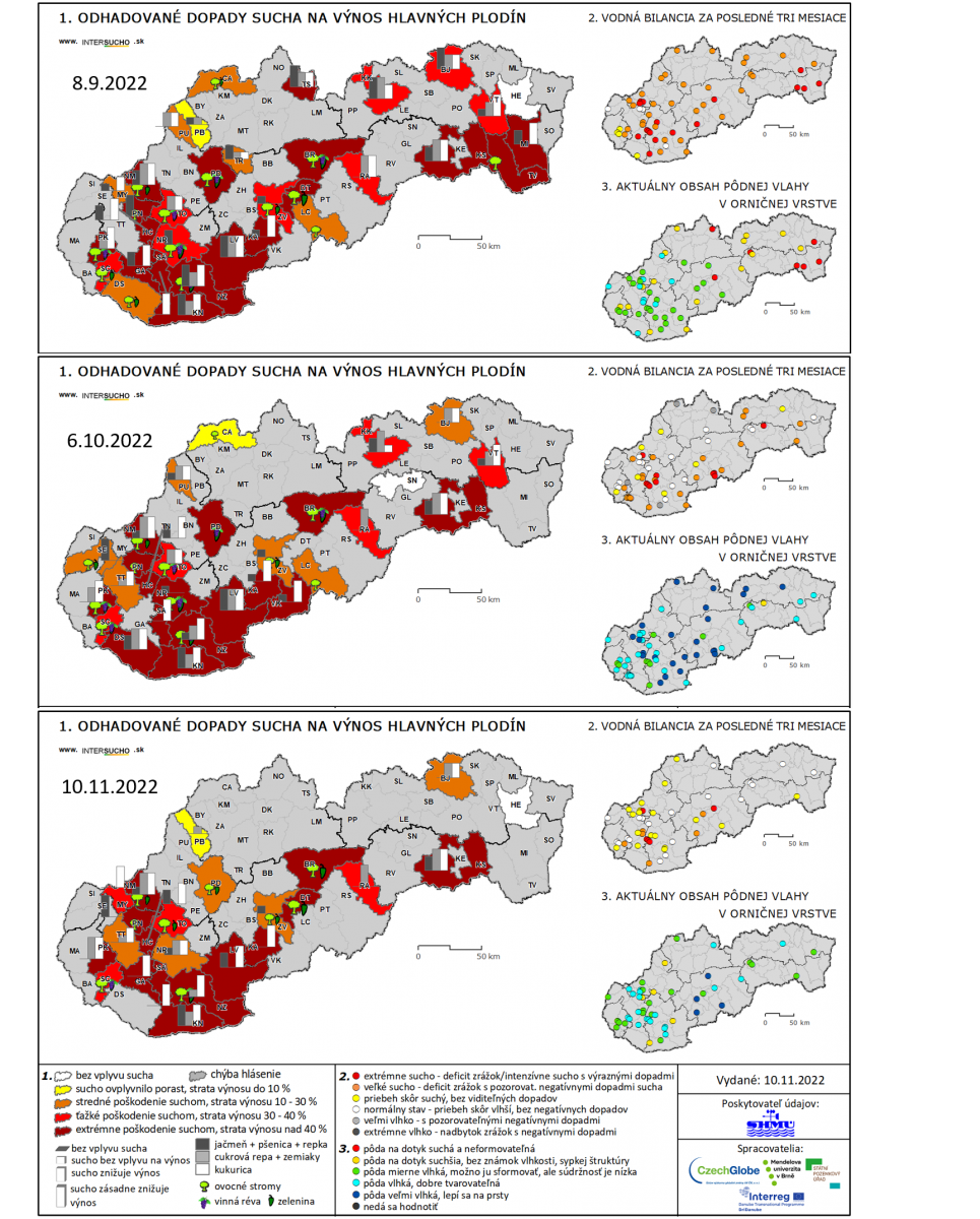 Obr. 6: Odhadované dopady sucha na poľnohospodárske plodiny v mesiacoch september-november v rámci monitoringu Intersucho