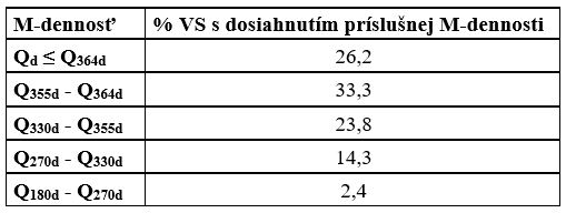 Tab. 5 M-dennosť minimálnych priemerných denných prietokov v hodnotených staniciach v HR 2023