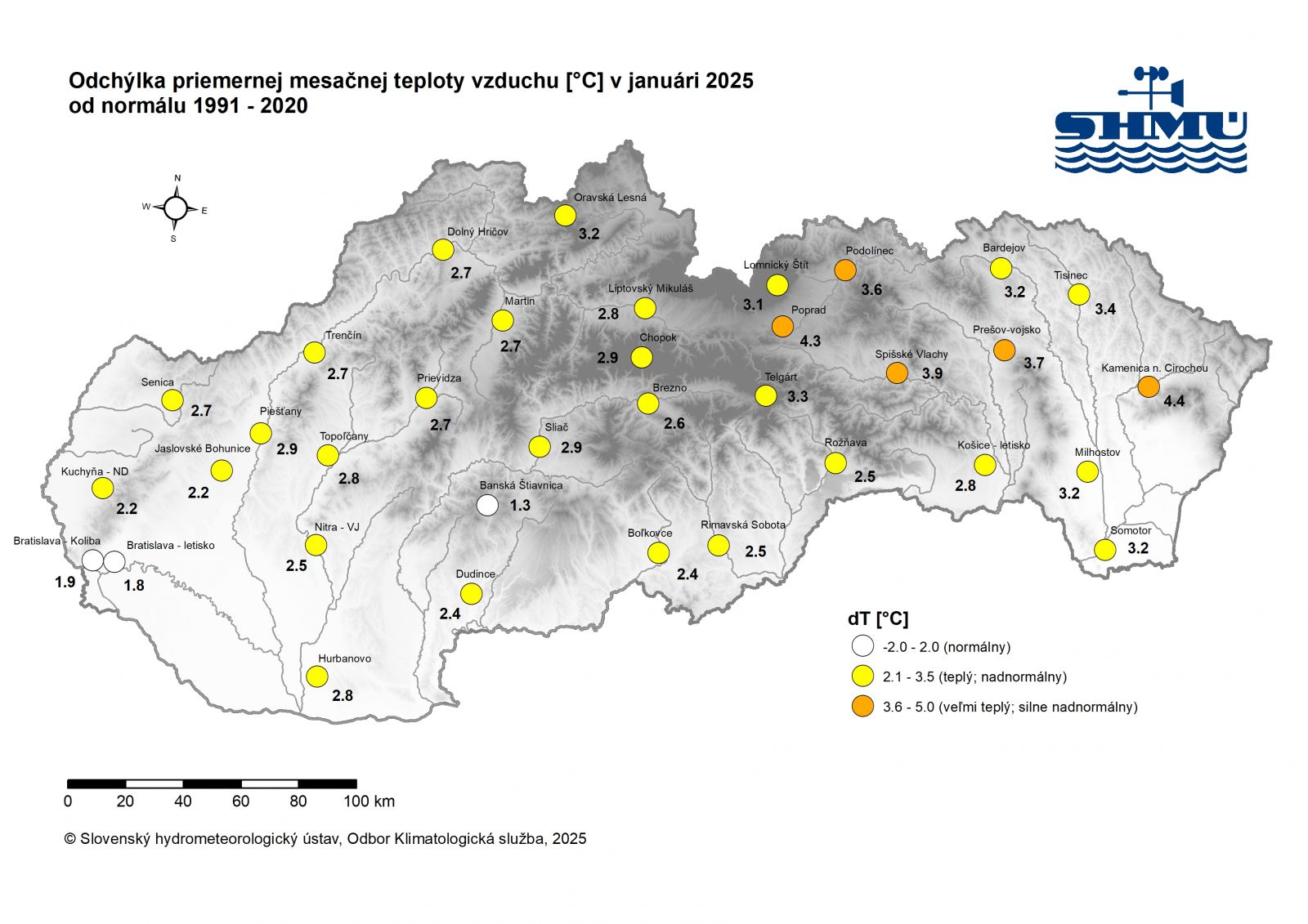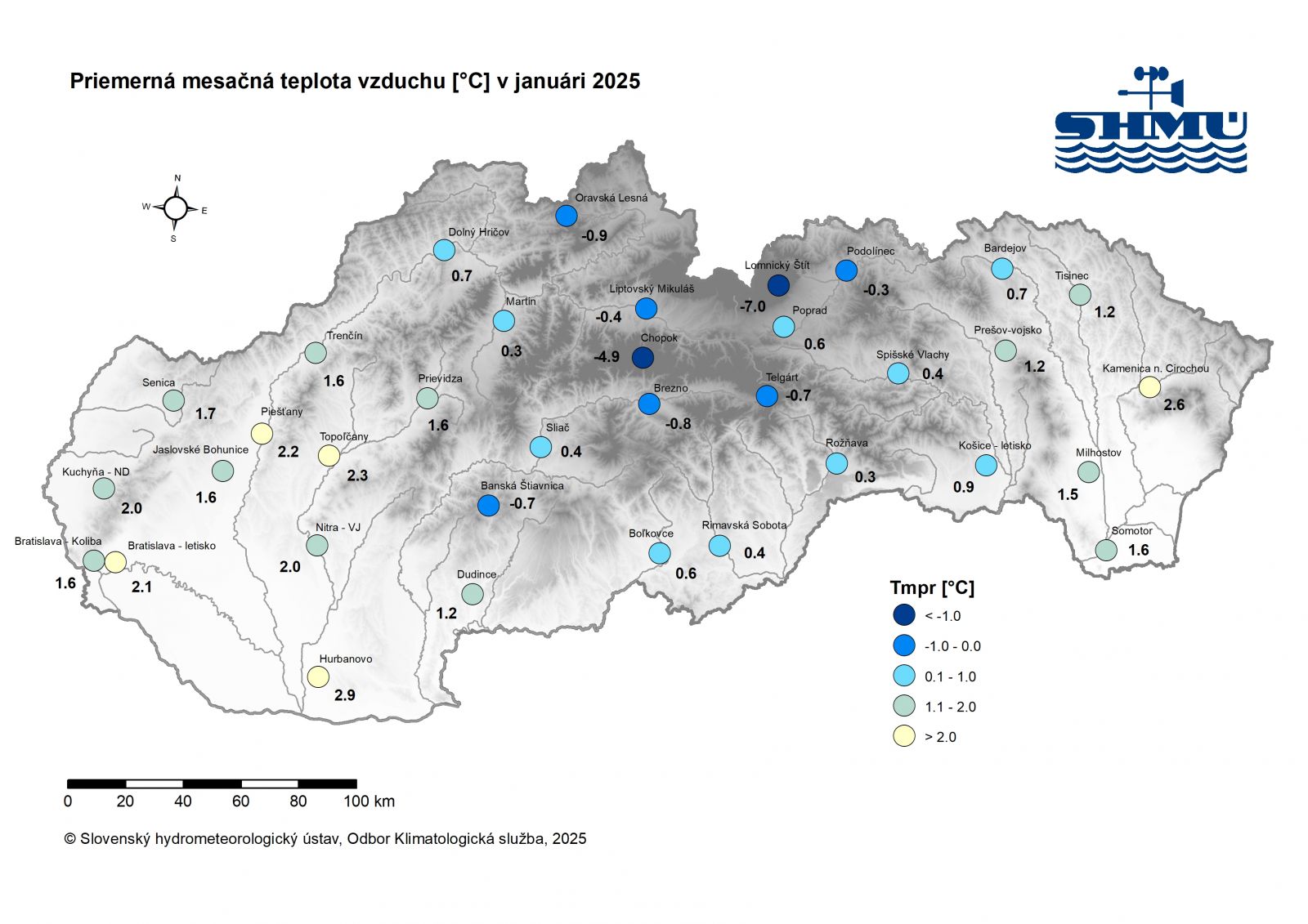 Toto zhodnotenie vychádza z operatívnych údajov, ktoré boli dostupné hneď po skončení mesiaca 3.2.2025. Podrobnejšie, konečné zhodnotenie bude uverejnené na webovej stránke SHMÚ koncom mesiaca február 2025.