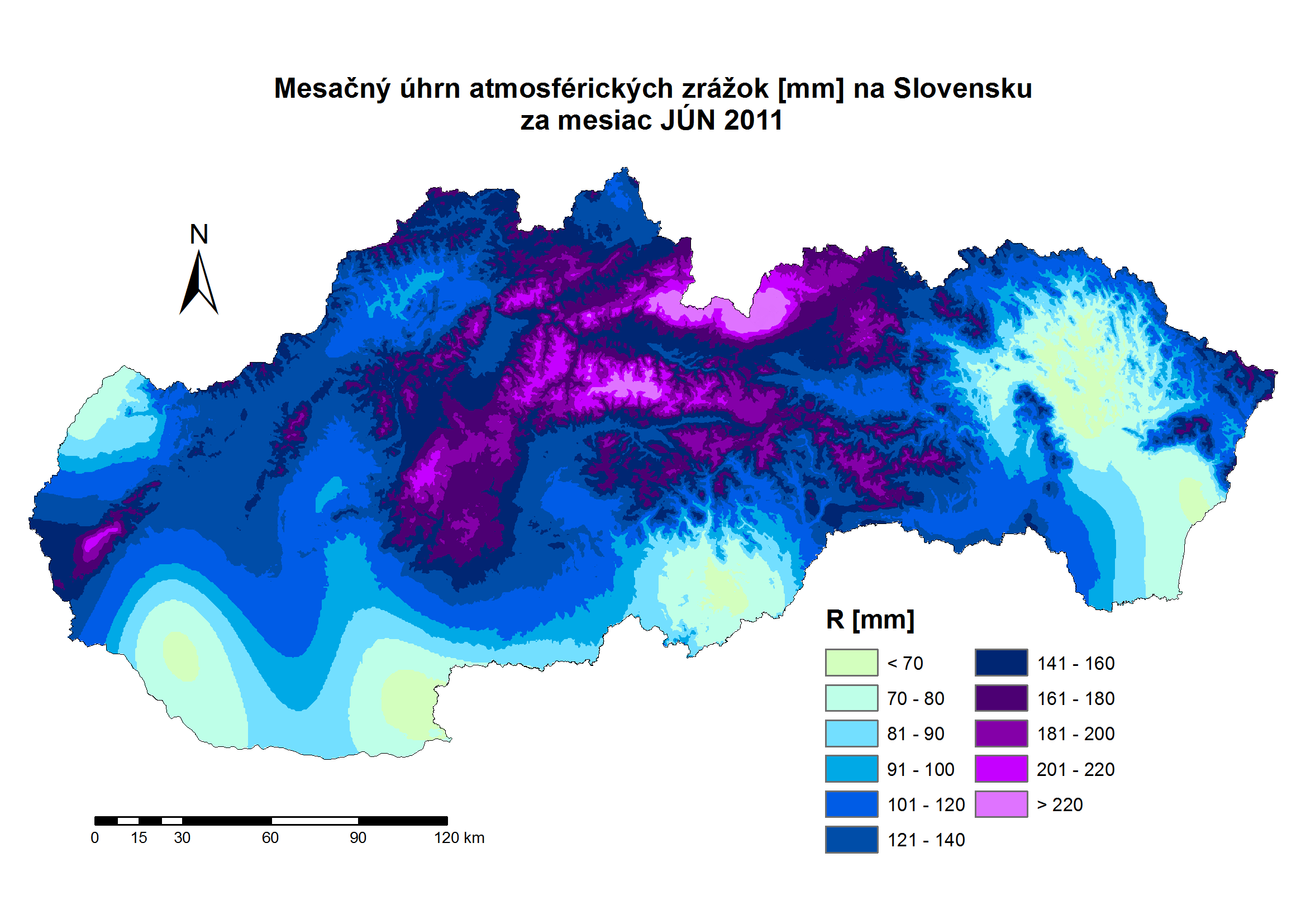 Leto 2011 bolo zaujímavé aj z hľadiska atmosférických zrážok, ktoré boli často spojené so silnými búrkami. Napríklad v Banskej Štiavnici napršalo 6. júna pri búrke 66 mm zrážok. V tejto lokalite to bol 2. najvyšší denný úhrn zrážok v júni aspoň od roku 1901. Len o deň neskôr, dňa 7. júna, spôsobila katastrofálnu povodeň búrka postupujúca od juhu k svahom Malých Karpát, pričom 7. júna v Modre, Piesku napršalo až 104 mm zrážok. Aj dňa 9. júna ráno pri výdatnom daždi napršalo v Bratislave, Mlynskej doline 50 mm zrážok, čo spôsobilo problémy predovšetkým v kopcovitom teréne západnej časti Bratislavy. Veľa búrok sa vyskytovalo na Slovensku aj v nasledujúcich dňoch prvého letného mesiaca. Za celý jún sa vyskytlo len 6 dní, kedy žiadna meteorologická stanica na Slovensku nezaznamenala búrku. Výdatné zrážky sa vyskytli aj na konci júna. Popoludní a večer dňa 30.6.2011 postupoval cez Slovensko výrazný studený front a odtekajúca dažďová voda spôsobila v Bratislave už druhýkrát v jednom mesiaci problémy. V Bratislave na Kolibe napršalo 54 mm a v Stupave to bolo až 74 mm zrážok.