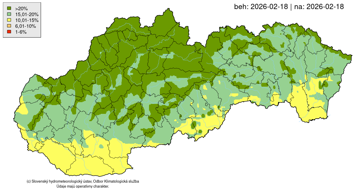 V prípade požiarneho nebezpečenstva sa jedná o dva produkty. Prvým je index požiarneho nebezpečenstva – šírenie požiaru (FWI; Obr. 1 vľavo), ktorý vyjadruje, aké je riziko vzniku a šírenia lesných a vegetačných požiarov v dôsledku aktuálnych a predchádzajúcich poveternostných podmienok. Druhým indexom je vlhkosť palivového dreva s priemerom 1 – 2.5 cm (Obr. 1 vpravo), ktorý vyjadruje, koľko vody obsahuje horľavý materiál v prírode. Udáva sa v percentách z celkového objemu hmoty a patrí medzi najdôležitejšie faktory, ktoré rozhodujú o tom, ako ľahko môže vzniknúť a šíriť sa požiar. Čím je palivo suchšie, tým je riziko požiaru vyššie. V podzáložke „Index požiarneho nebezpečenstva“ ostáva aktívny ešte aj pôvodný mapový produkt, ktorý SHMÚ publikuje od roku 2002. Mapy nájdete denne aktualizované na stránke https://www.shmu.sk/sk/?page=1&id=klimat_ipn.
