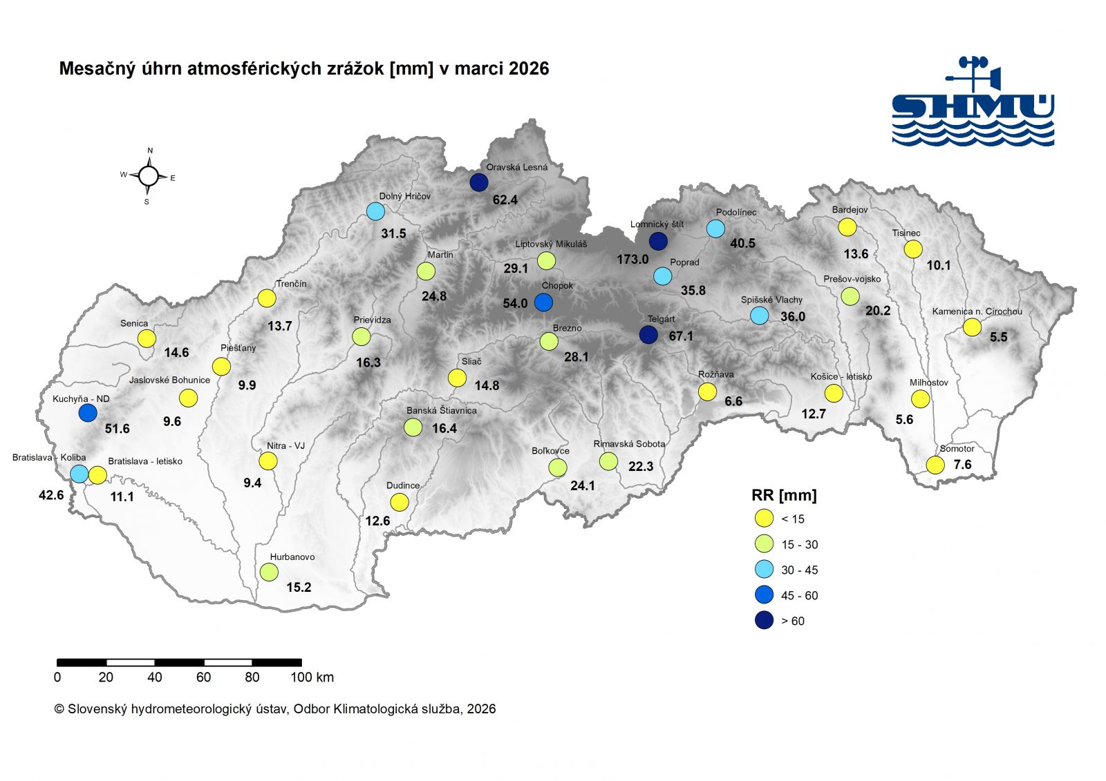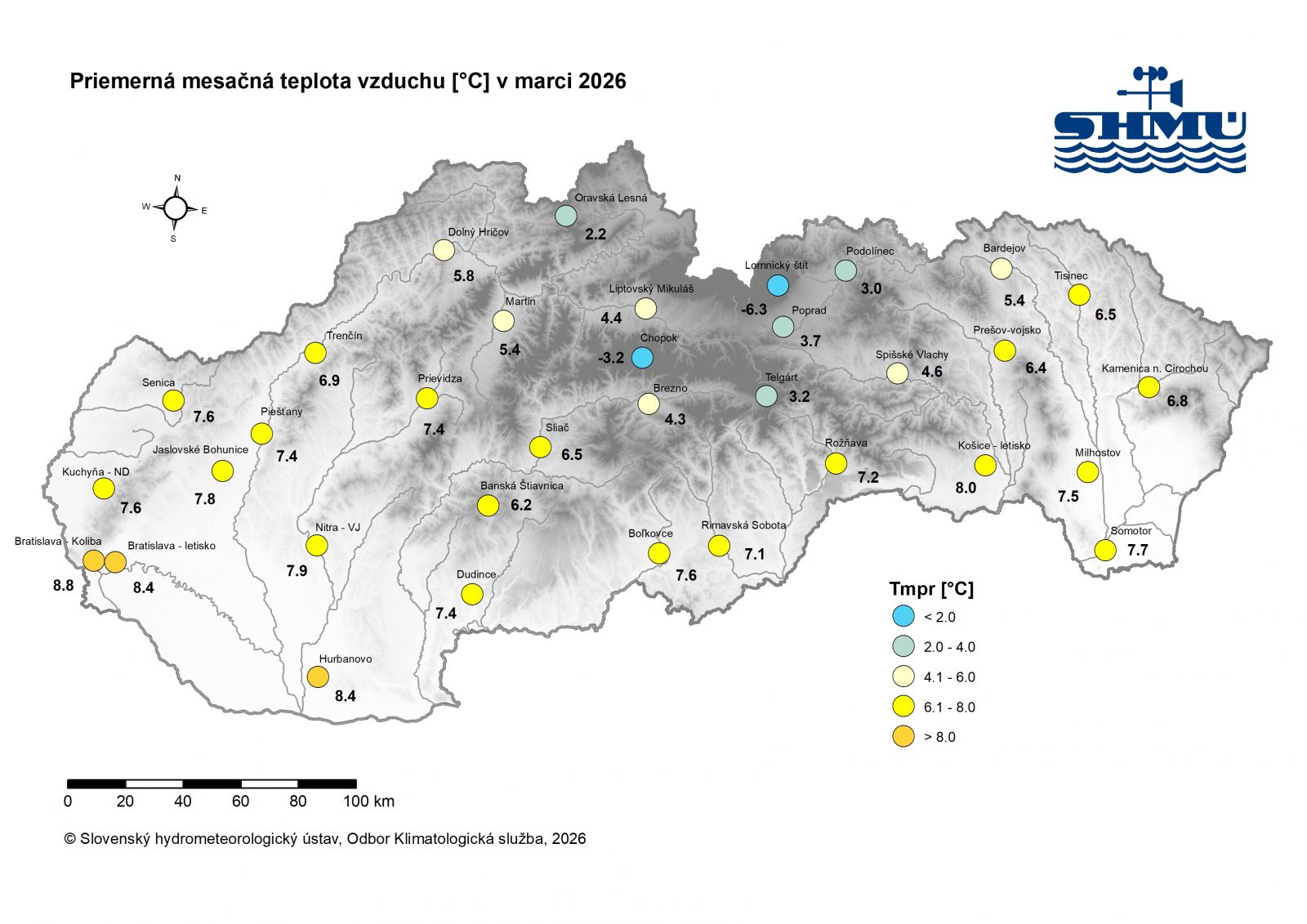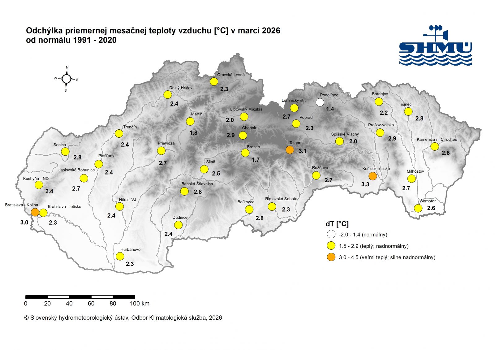 Toto zhodnotenie vychádza z operatívnych údajov, ktoré boli dostupné hneď po skončení mesiaca 1.4.2026. Podrobnejšie, konečné zhodnotenie bude uverejnené na webovej stránke SHMÚ koncom mesiaca apríl 2026.
