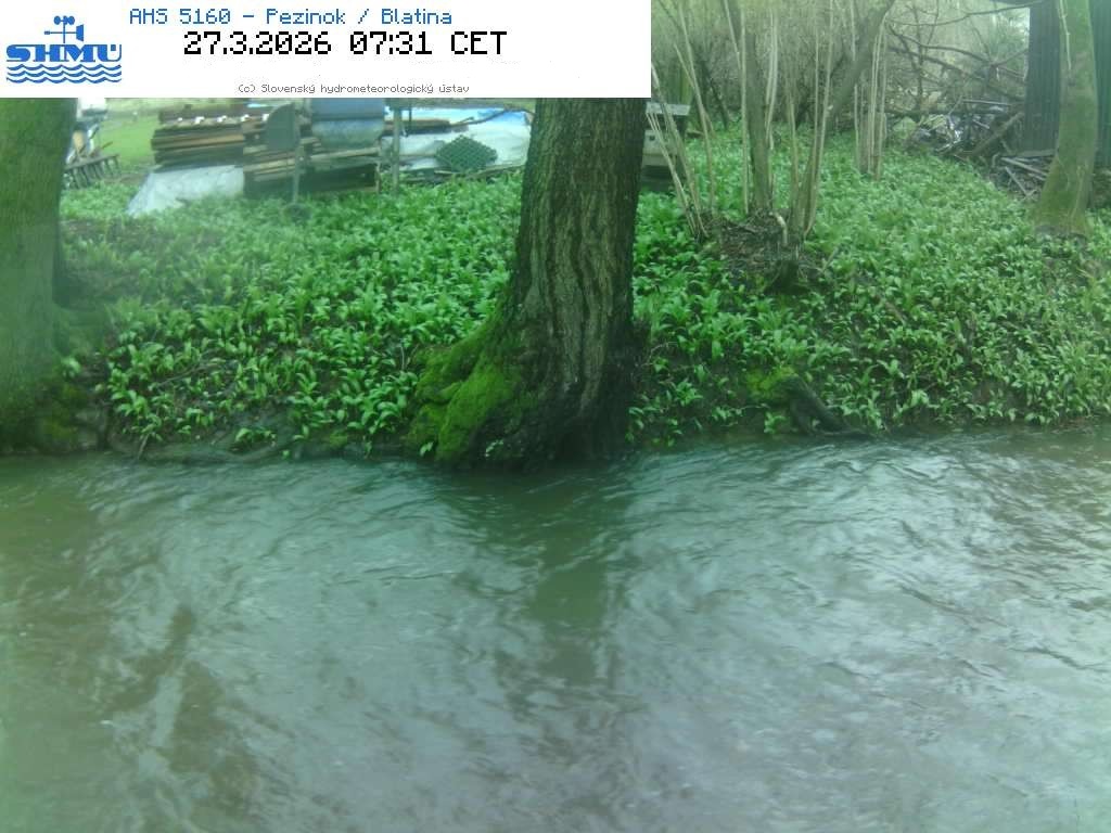 Poveternostná situácia sa otočila v prospech zrážkovej činnosti až v závere marca, aj to len na časti územia, predovšetkým v povodiach západného a čiastočne aj severného Slovenska. Tu bol zaznamenaný prechodný mierny vzostup až vzostup - v povodí Myjavy, hornej časti Moravy, v hornej a strednej časti subpovodia Nitry, na Žitave a na malokarpatských prítokoch. Zvýšený vodný stav s prekročením 1. SPA sme pozorovali na Blatine v Pezinku (Obr. 5, Tab. 1).