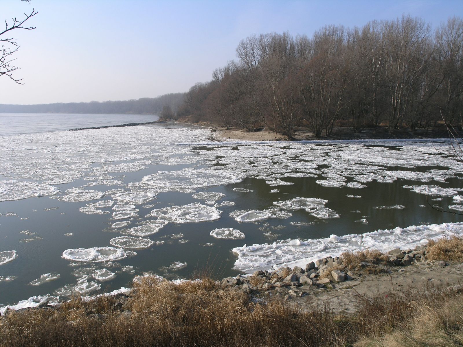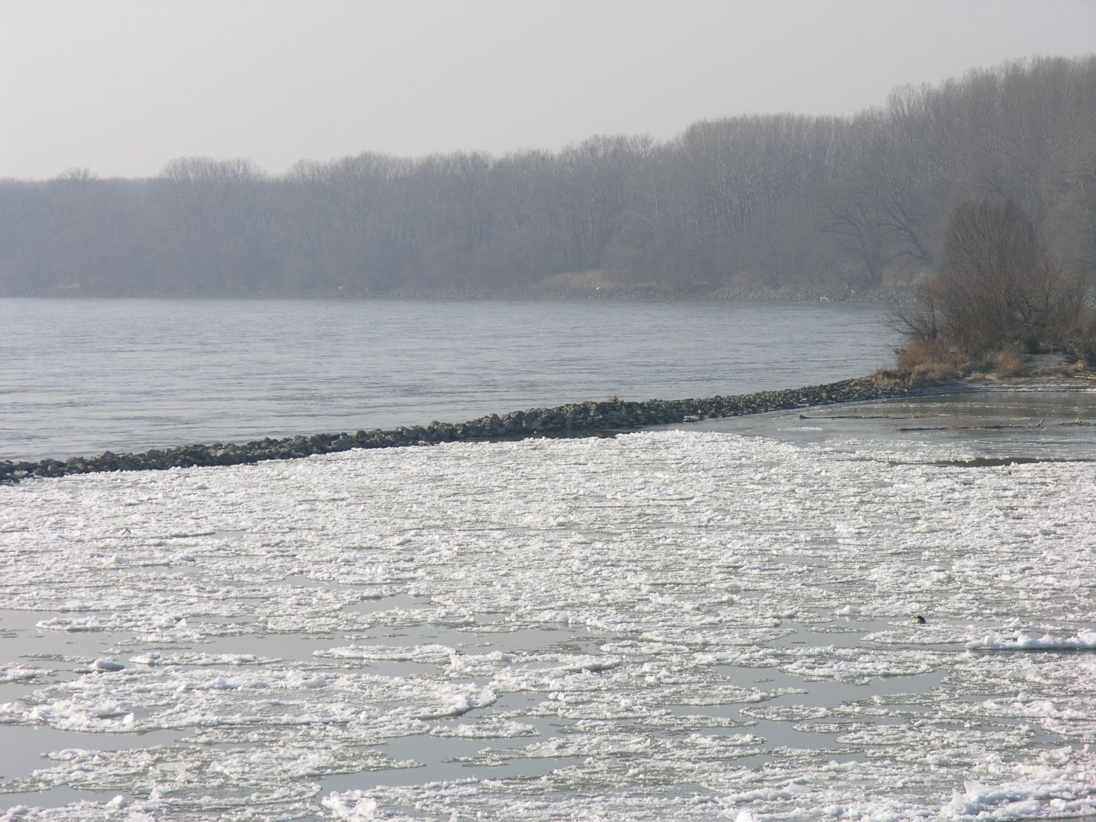 Obr. 2 Hromadenie ľadovej triešte v ústí Moravy do Dunaja