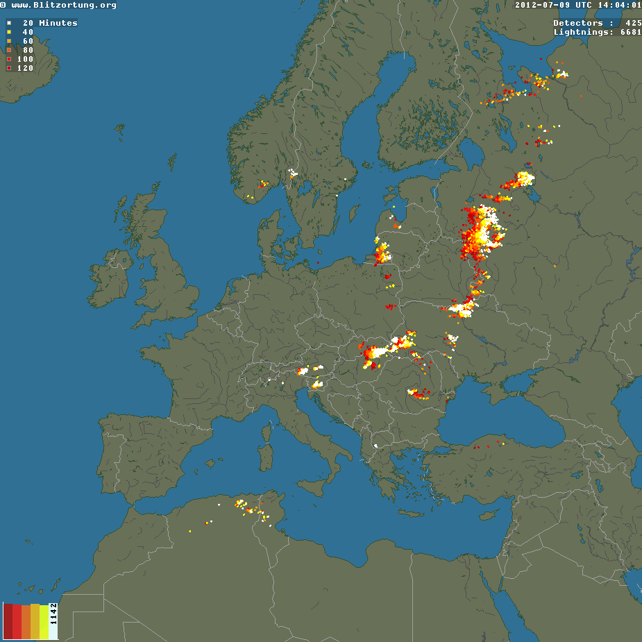 Vyššie úhrny atmosférických zrážok sú v lete podmienené najmä búrkovou činnosťou (napr. 9.7.2012):