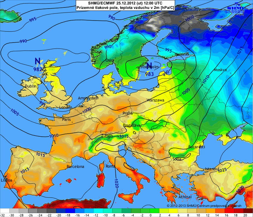 Od 8.12.2012 počasie v strednej Európe čiastočne ovplyvňovala tlaková níž nad Balkánom. Až do 11.12. sa naše územie nachádzalo v oblasti nižšieho tlaku vzduchu.