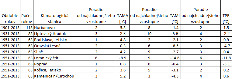 V nasledujúcej tabuľke je zhodnotené obdobie 16.3.-31.3.2013 za historické obdobie pozorovania na vybraných klimatologických staniciach Slovenska.