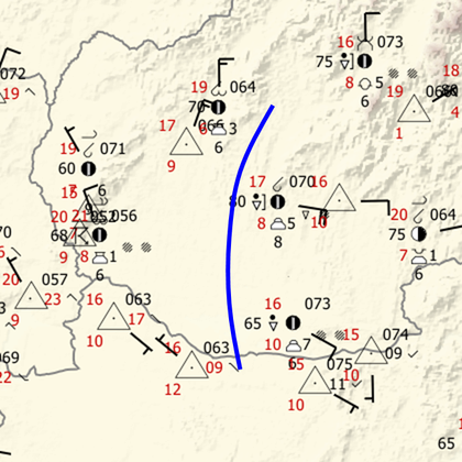 A/ Pri jeho prechode sa stočil vietor na južný a zoslabol. Tento efekt sme pozorovali na niekoľkých staniciach, vrátane Košíc a Trebišova. V Košiciach sa vietor stočil zo severného na južný až juhozápadný a výrazne zoslabol.