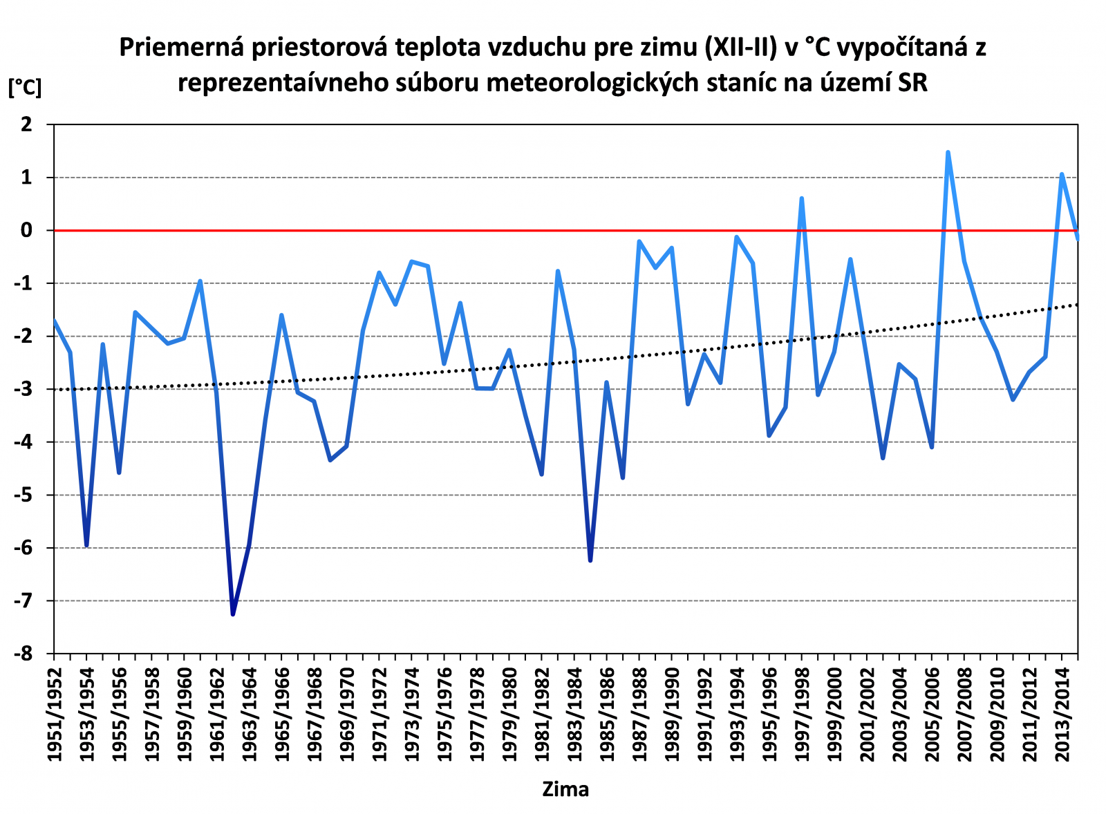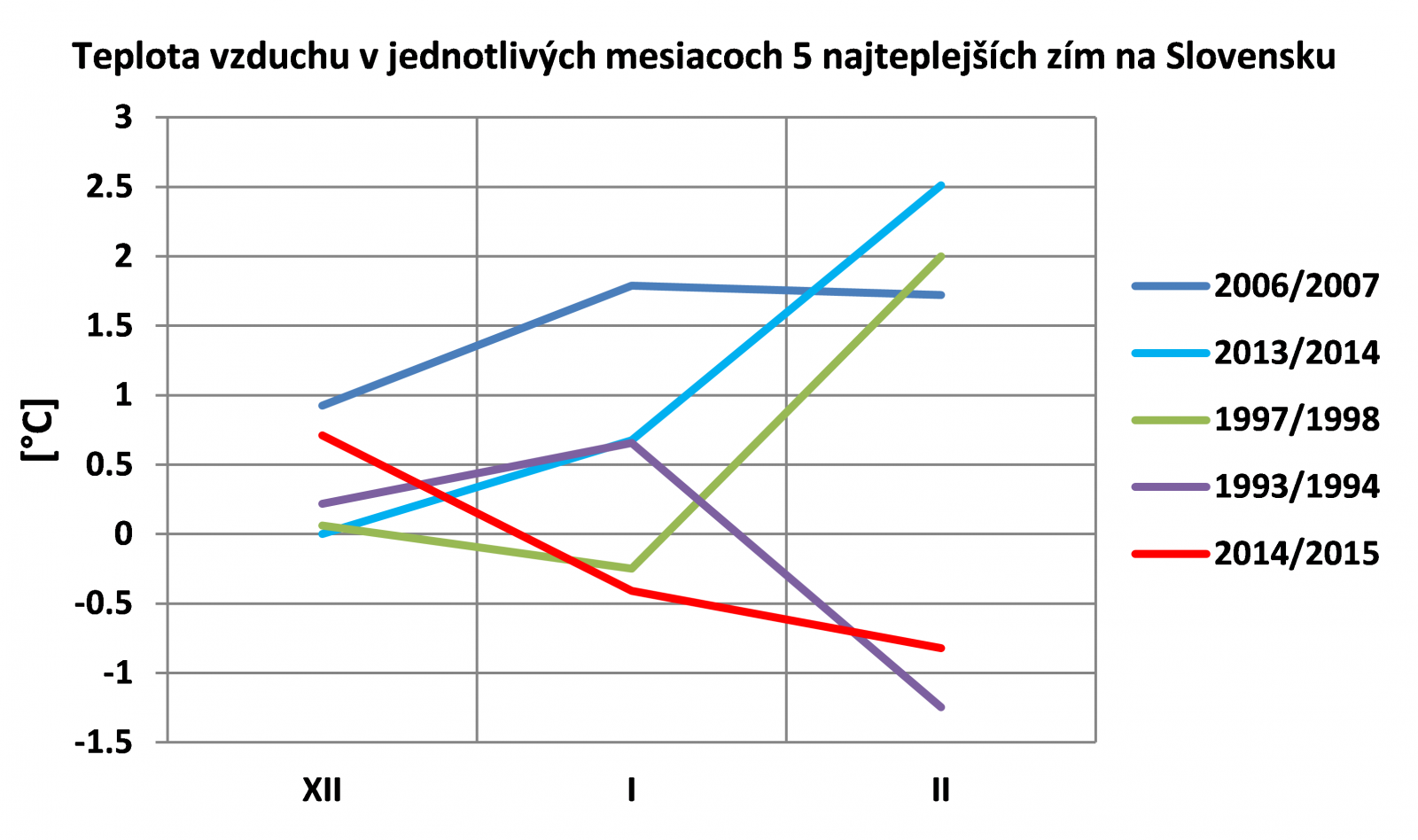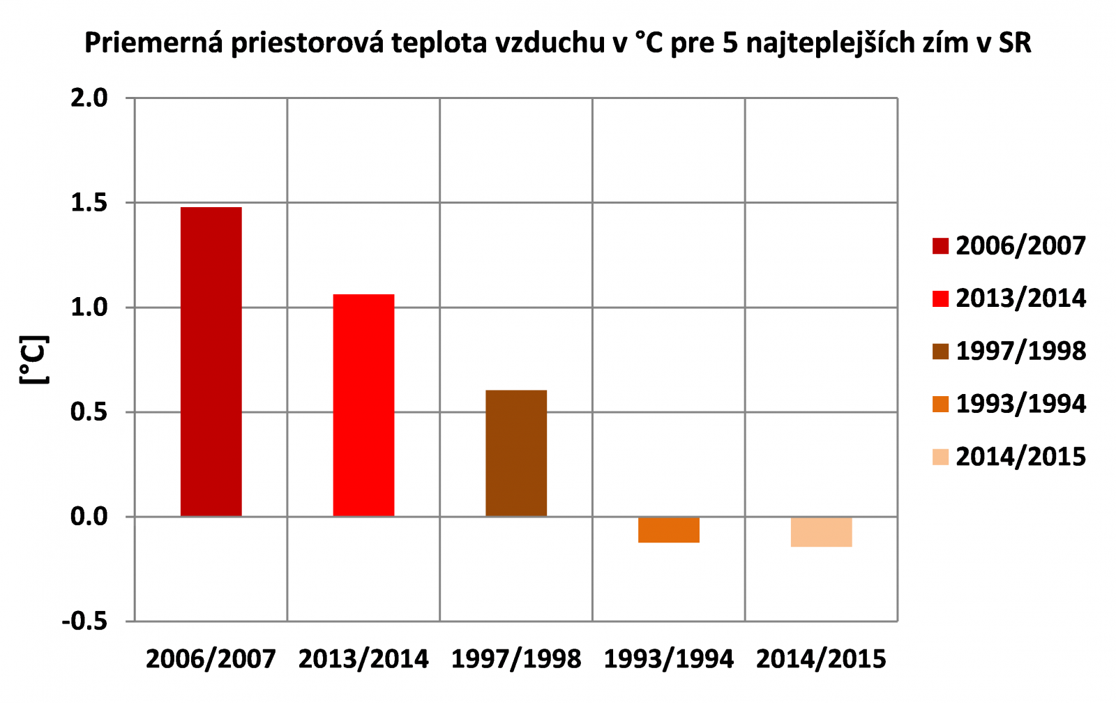 Zima 2014/2015 sa zaradila na Slovensku medzi 5 najteplejších zím od polovice 20. storočia.