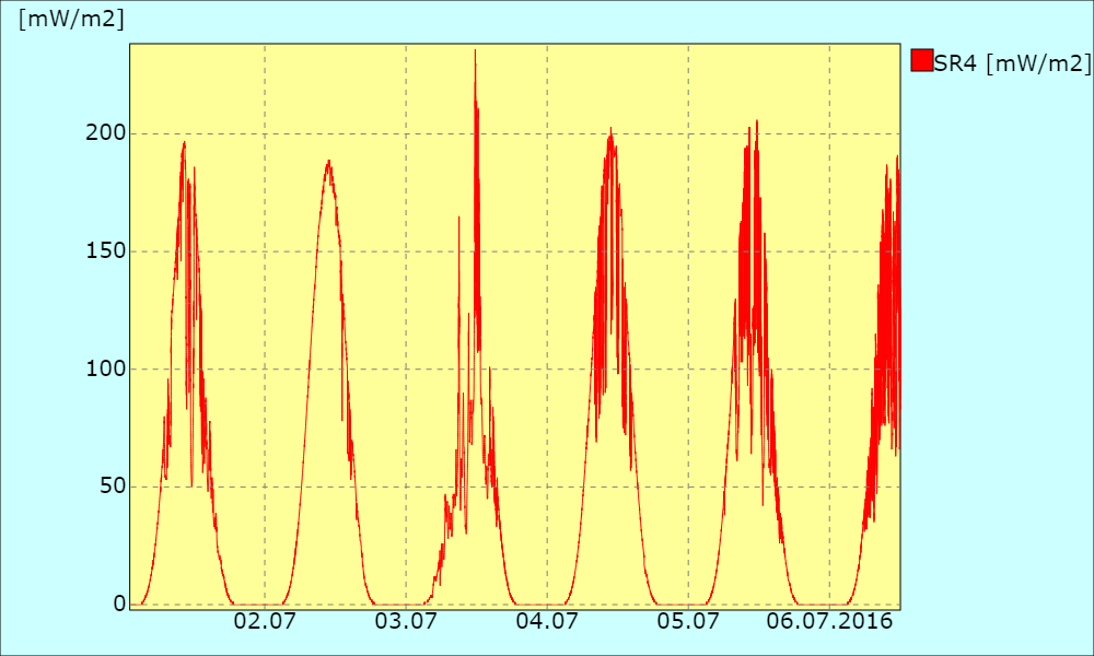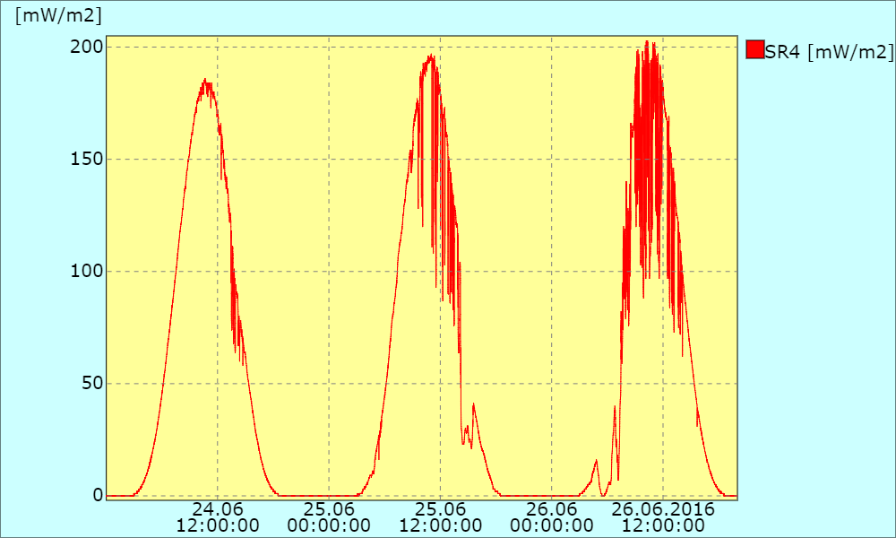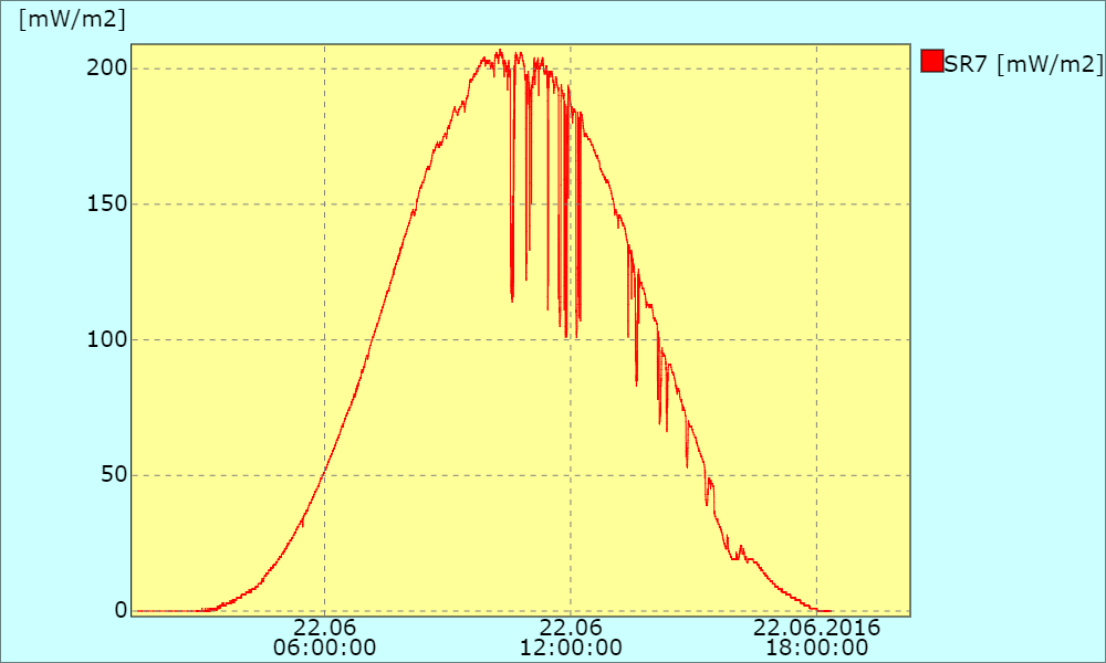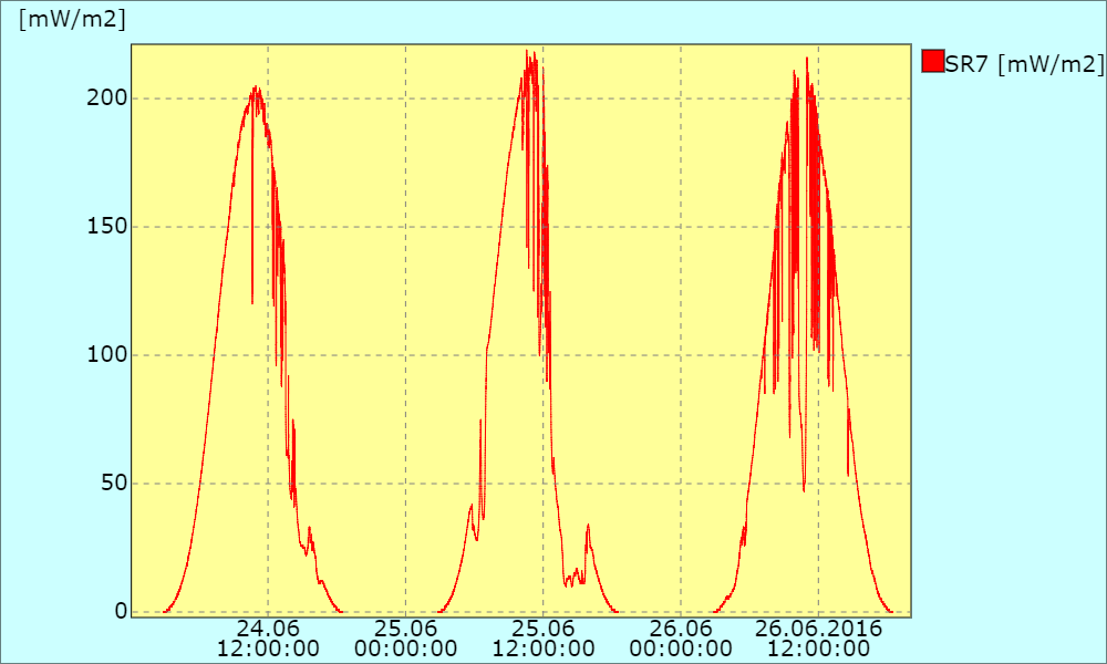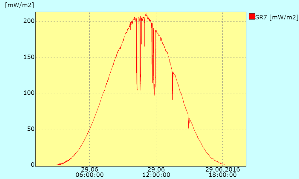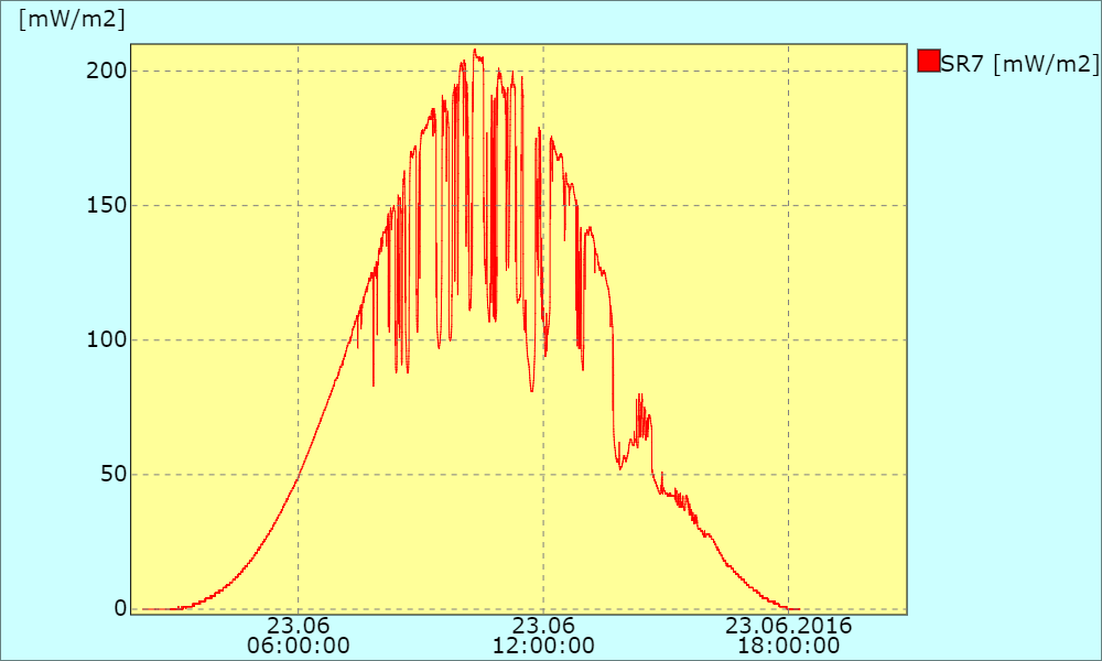 23.6.2016 merané  hodnoty UVI na poludnie na Slovensku dosahovali 7,4  až  8,3 , zníženie hodnôt pri bezoblačnej oblohe  oproti 22.6. bolo, pri približne rovnakom množstve celkového ozónu,  pravdepodobne spôsobené atmosférickým aerosólom.
