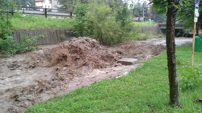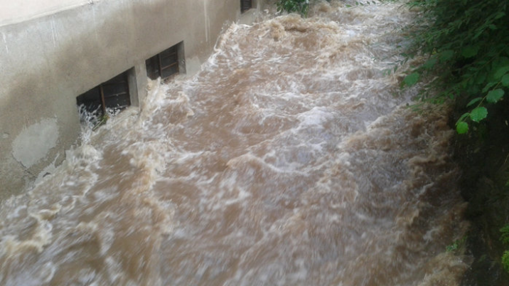 Obr. Cb: Rozbúrený Kremnický potok (Foto: Jana Morová, prebraté z tvnoviny.sk)