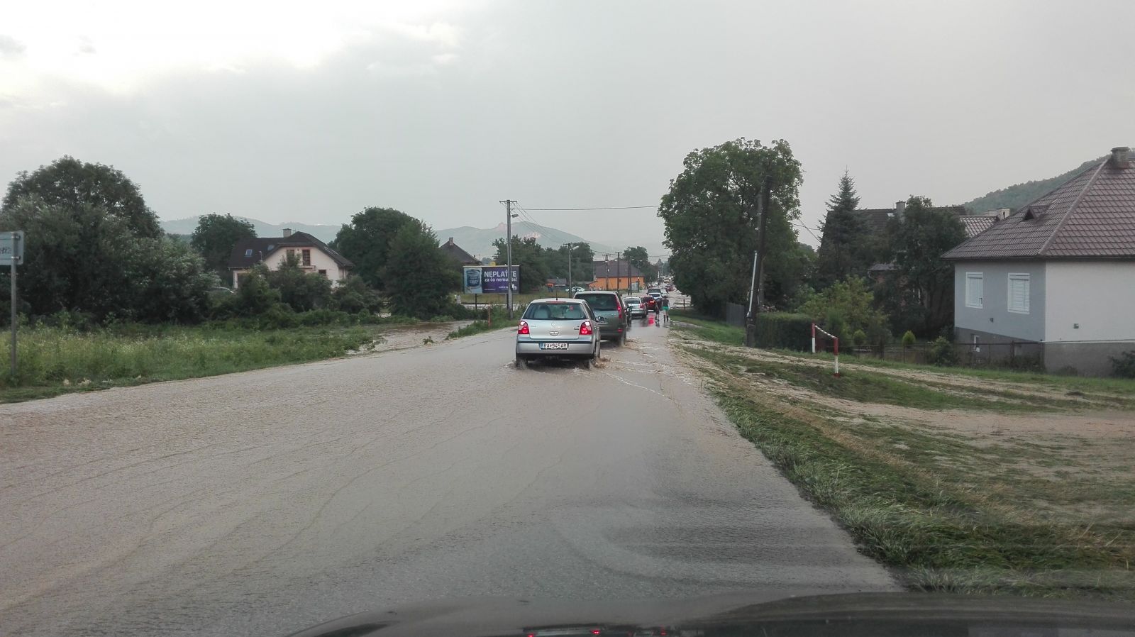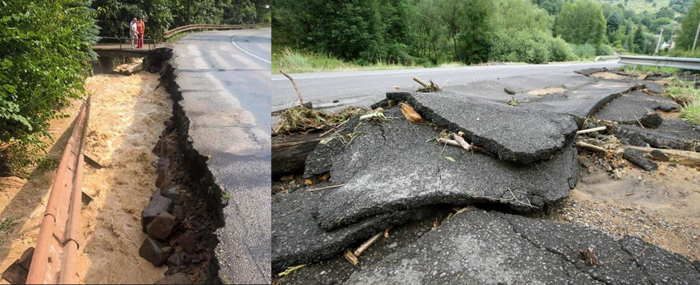 Obr. Ca: Silný dážď podmil hlavnú cestu, ktorá vedie cez Kremnické Bane (Foto: nasziar.sme.sk, prebraté z netky.sk )