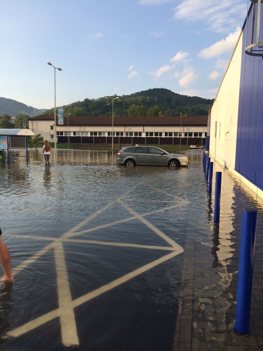 Obr. Ab: Zatopené okolie hypermarketu TESCO v meste Revúca