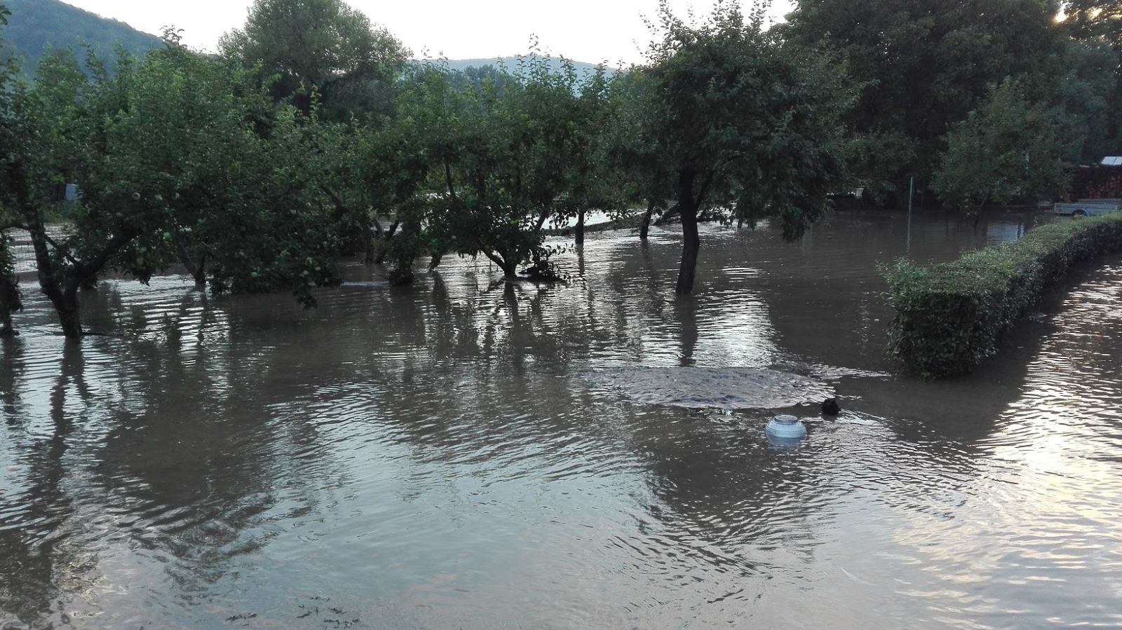 Obr. Ag: Zaplavené záhradky v obci Mokrá Lúka