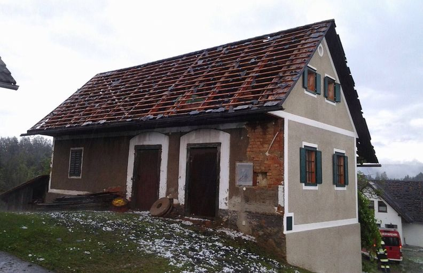 Obr. 4b - Zničená strecha po krupobití v Rakúsku.
