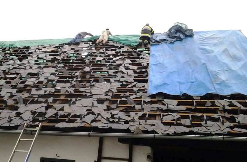 Obr. 4c - Zničená strecha po krupobití v Rakúsku.