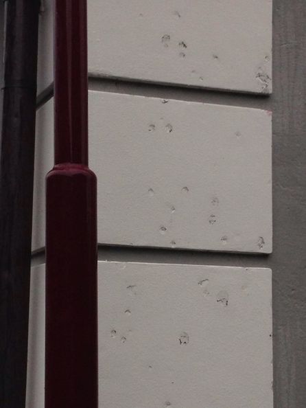 Obr. 4d - Zničená stena na kraji domu. Takéto škody spôsobujú veľké krúpy hnané silným vetrom.