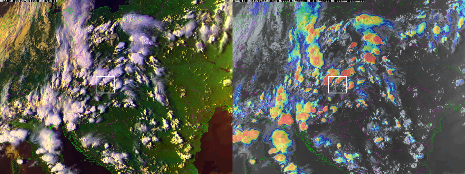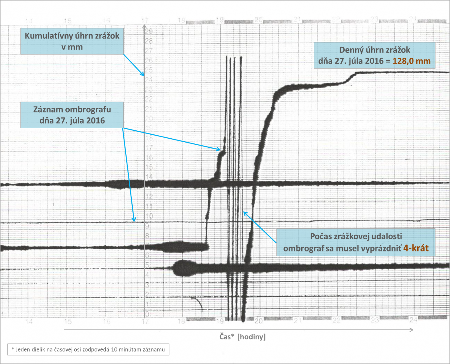 Ako sme informovali už v predošlých analýzach, v priebehu júla 2016, a najmä v jeho závere, sa vyskytlo na Slovensku hneď niekoľko pozoruhodne vysokých denných, prípadne krátkodobých úhrnov zrážok, napríklad v Komárne alebo Revúcej [viac v analýze: Extrémne úhrny zrážok v závere júla 2016]. A navyše, júl 2016 aj ako mesiac, skončil s výrazne pozitívnou vlahovou bilanciou, pričom na niektorých staniciach boli prekročené historické maximá júlového mesačného úhrnu [viac v analýze: Zrážkovo rekordný júl 2016]. Ďalší extrémny krátkodobý úhrn zrážok bol na konci júla zaznamenaný aj na zrážkomernej stanici Dolná Poruba.