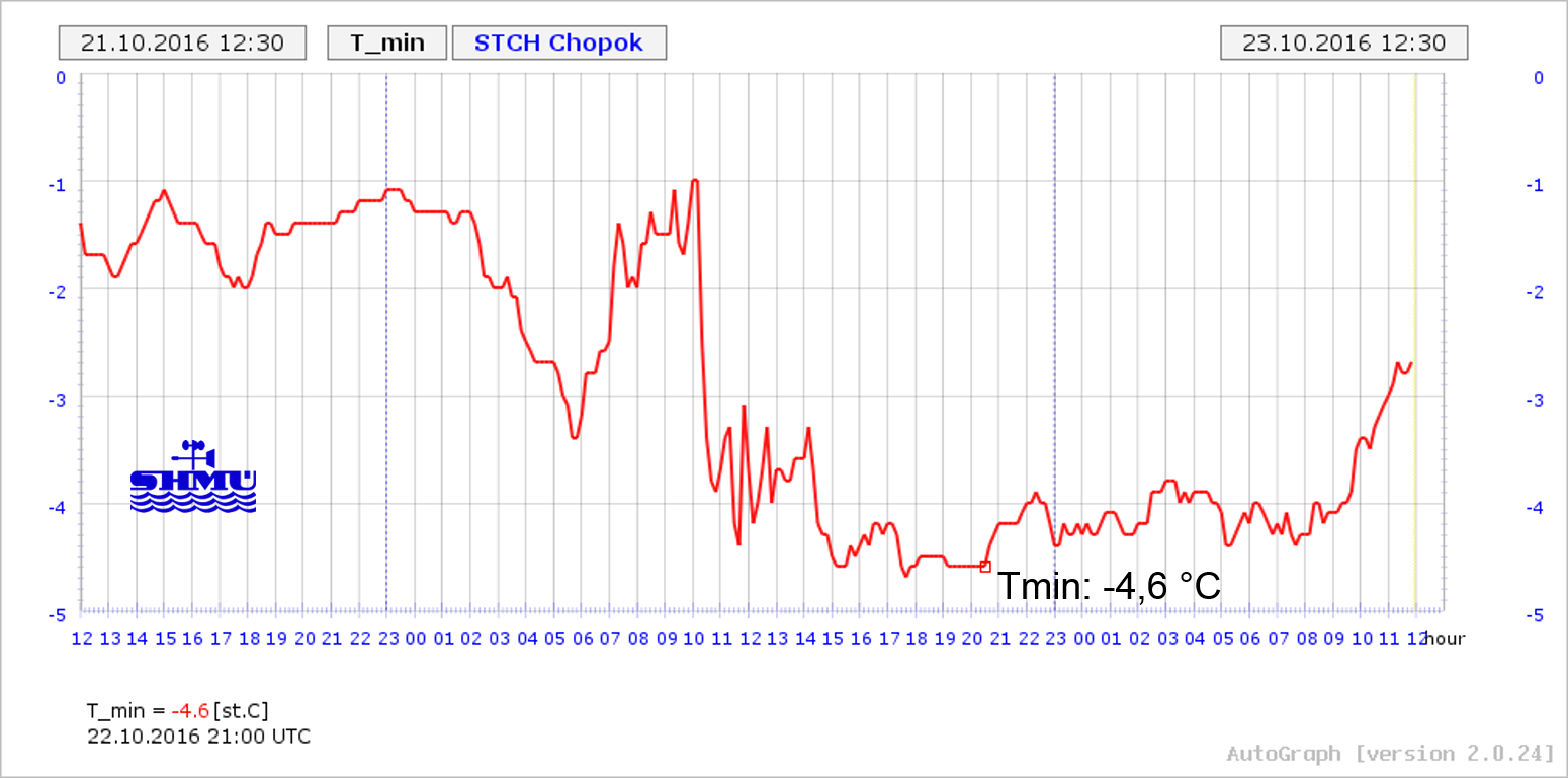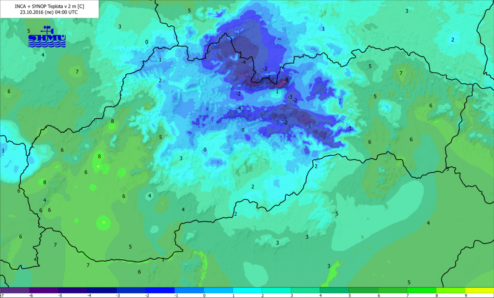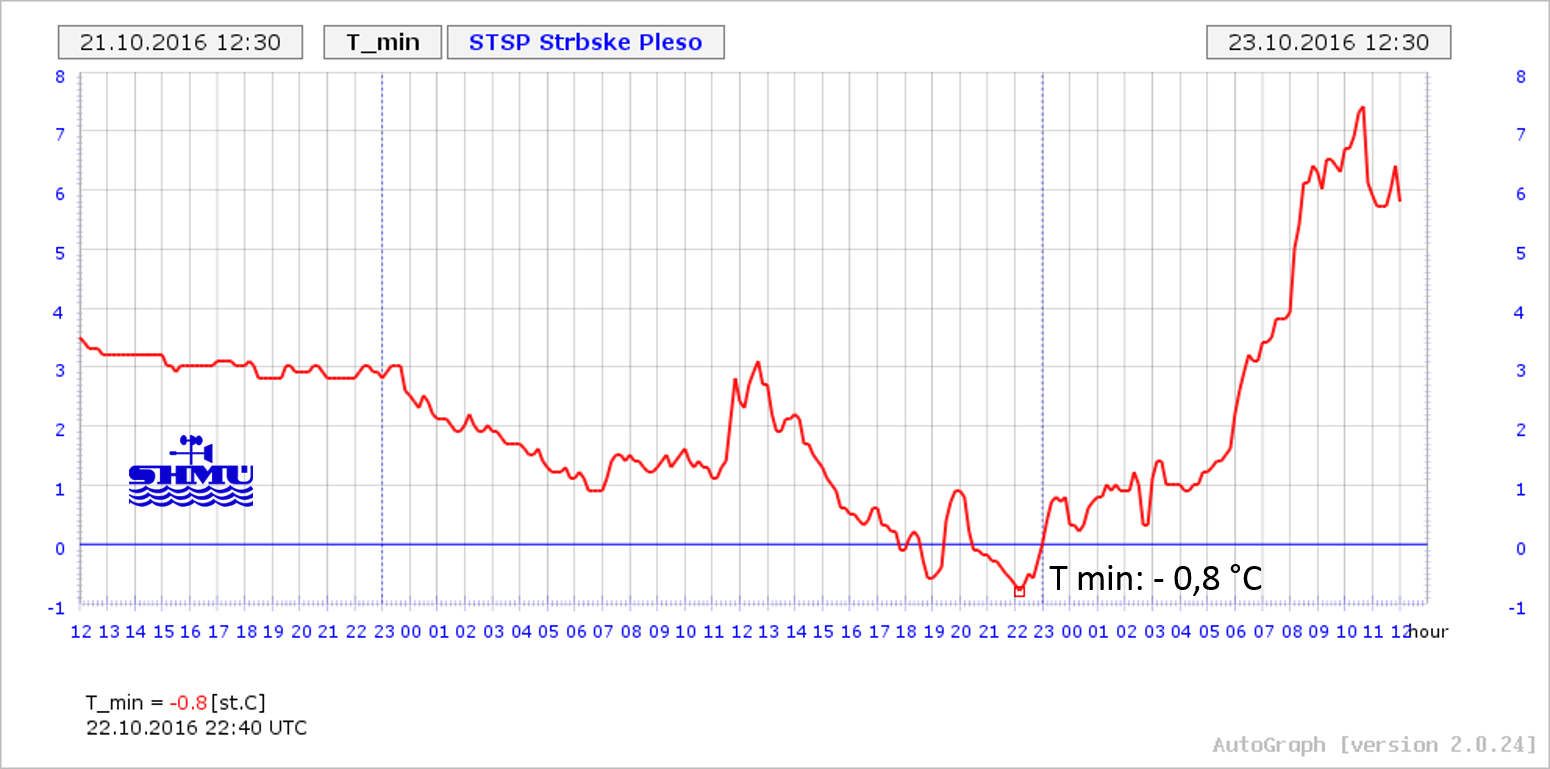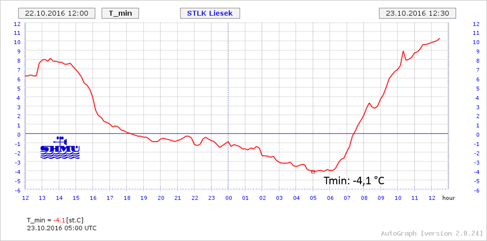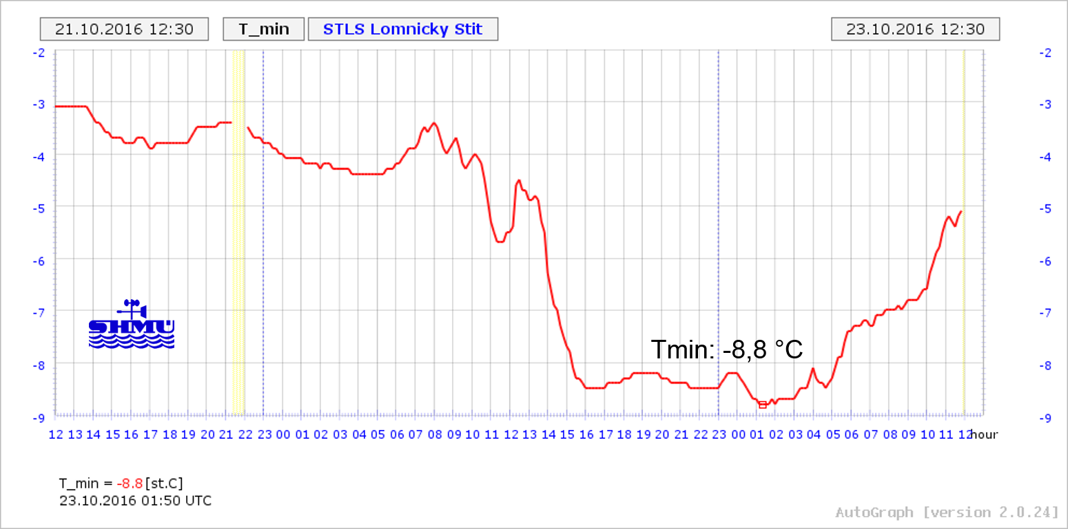 V noci zo soboty na nedeľu sa vplyvom advekcie studeného vzduchu v stredných vrstvách troposféry, ochladilo na Lomnickom štíte na -8,8 °C. V nižších polohách prevažovala radiačná zložka ochladzovania a v Liesku na Orave klesla teplota vzduchu na -4,2 °C.