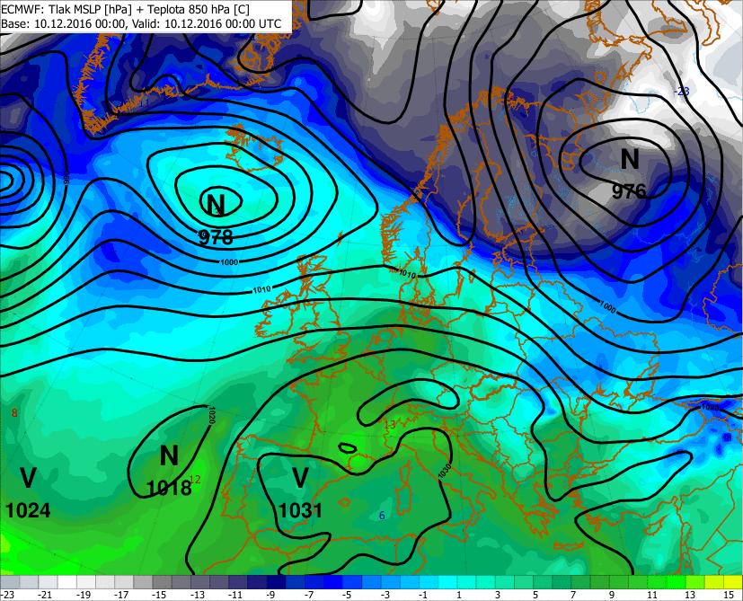 Táto situácia však dlho nevydrží. Na prelome týždňov očakávame, že sa znova začne ochladzovať. Zaujímavé však je, že atmosféra opäť "nevymyslí nič nové". Už zajtra sa podružná tlaková níž bude presúvať z oblasti Nórskeho mora nad Pobaltie (animácia 1) a s ňou spojený studený front prejde cez naše územie ďalej na juhovýchod. Za ním k nám prenikne chladnejší vzduch od severozápadu. Nepôjde však o studený arktický vzduch. Ten do našej oblasti prenikne až v pondelok 12.12. za oklúznym frontom spojeným so spomínanou nížou (tzv. pretočená oklúzia - ľahko identifikovateľné na zmene smeru vetra a výraznom poklese teploty rosného bodu na tejto animácii). Aj pri tomto vpáde studený a suchý vzduch opäť prenikne len do strednej a východnej Európy. Znamená to znovu veterno, sneženie najmä na severe a postupne aj silnejšie nočné mrazy, pričom na severe sa opäť budú vyskytovať aj celodenné mrazy. Situácia bude podobná, ako v úvode decembra (teda veterno, s prehánkami, na severe aj s trvalejším snežením a výrazným ochladzovaníme počas dňa), no vietor bude väčšinou trochu slabší a očakávame menej snehových zrážok. Ochladenie by však malo byť o niečo razantnejšie, už večer bude mrznúť na celom území, pričom na severe sa ochladí až k -10 °C (animácia 2). Podrobnosti v našej textovej predpovedi.